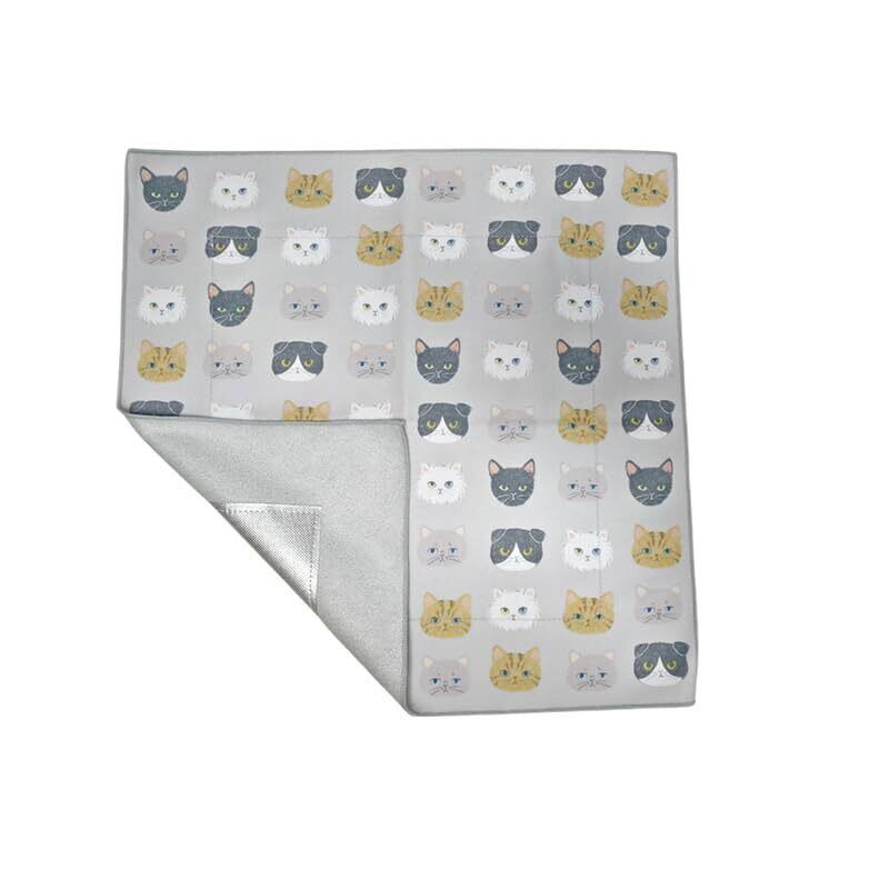 YouYouWu 巻くだけ保冷クロス ピタッとくっつく保冷温マルチクロス ピタクロ お弁当袋 保冷バッグ 結ばないランチクロス おしゃれ 可愛い ペットボトルカバー 傘袋 横42×縦42cm (グレー, ネコ)