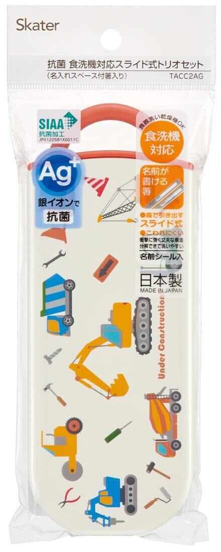 スケーター(Skater) 子供用 抗菌 スライド トリオセット お弁当 箸 スプーン フォーク はたらくクルマ 男の子 日本製 TACC2AG-A