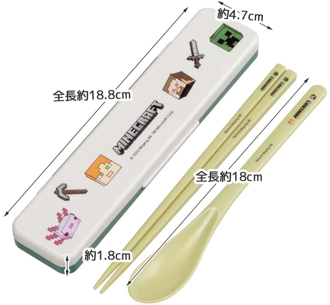 スケーター(Skater) 箸 スプーン コンビセット 18cm 抗菌加工 お弁当 大人用 シリコンクッション付きで音がならない 日本製 マインクラフト エクスプローラー CCS3SAAG-A