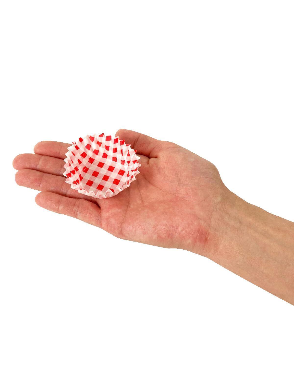 ●シンプルで清潔感のある純白紙に、かわいらしいチェック柄をあしらったおかずカップです。