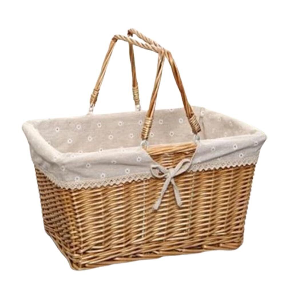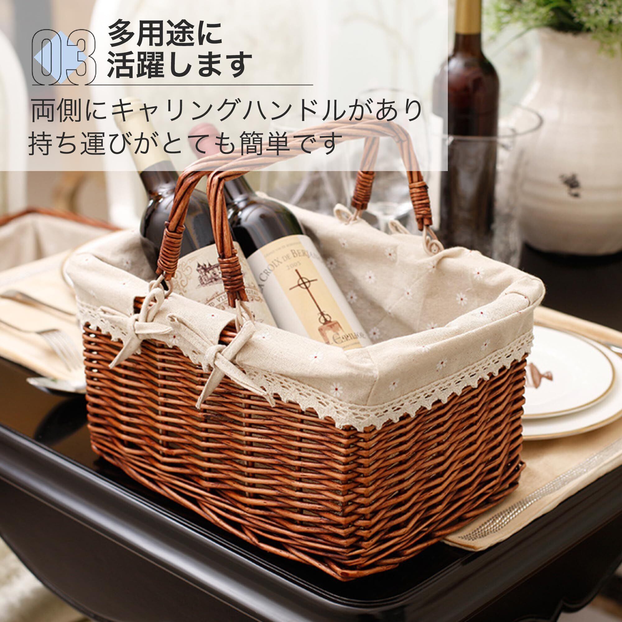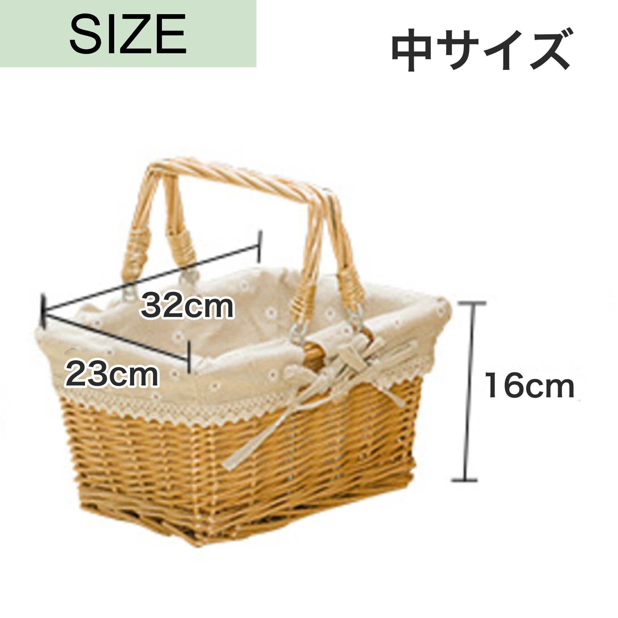 Asdays ピクニックバスケット 手編みバスケット 水洗い 籐製 キャリングハンドル付き ピクニック (タイプA, 中:32×23×16cm)