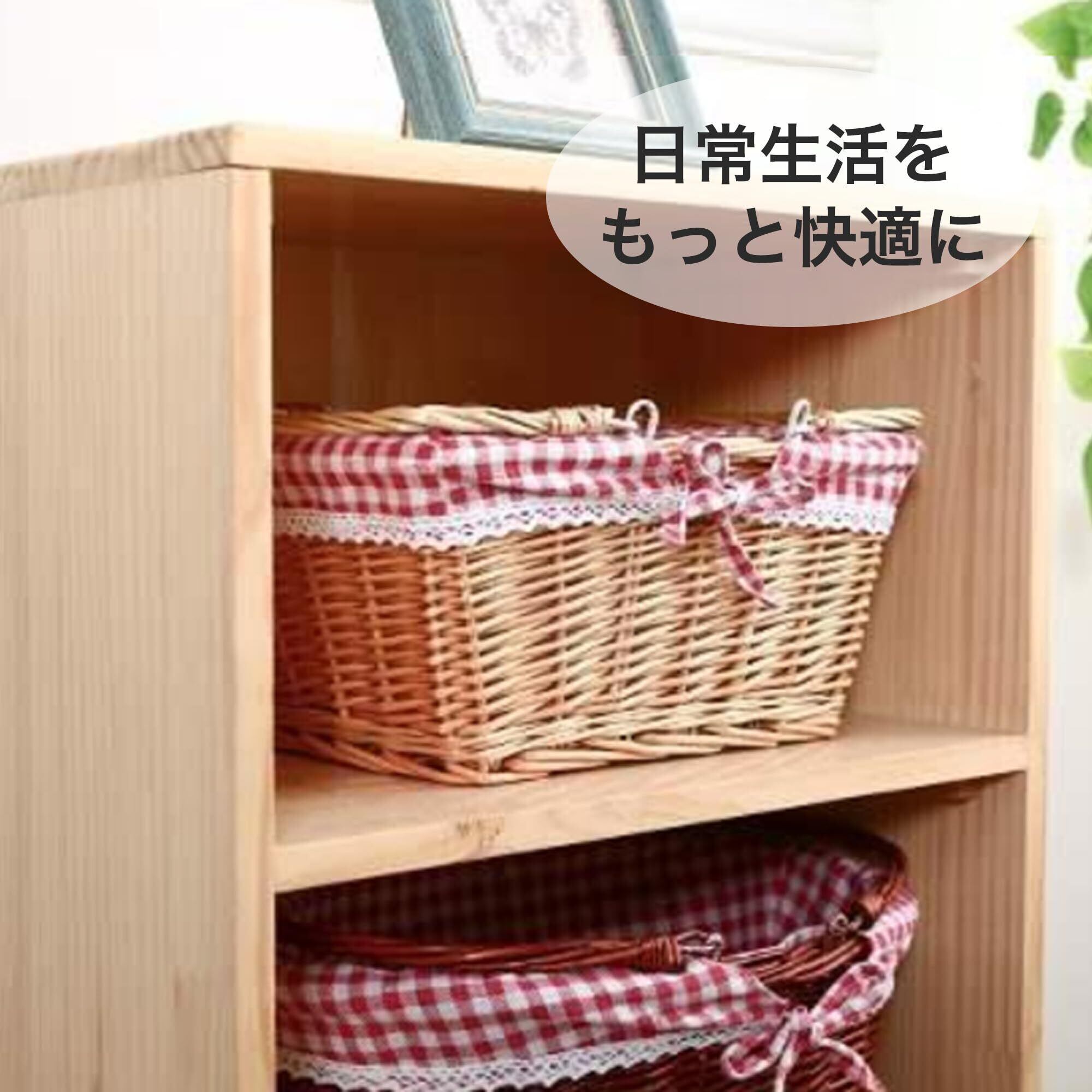 【おしゃれな収納バスケット】 小物やパントリーの整理に最適な、手編みバスケットです。 天然素材の籐で作られており、環境に優しく、手持ちも付いています。