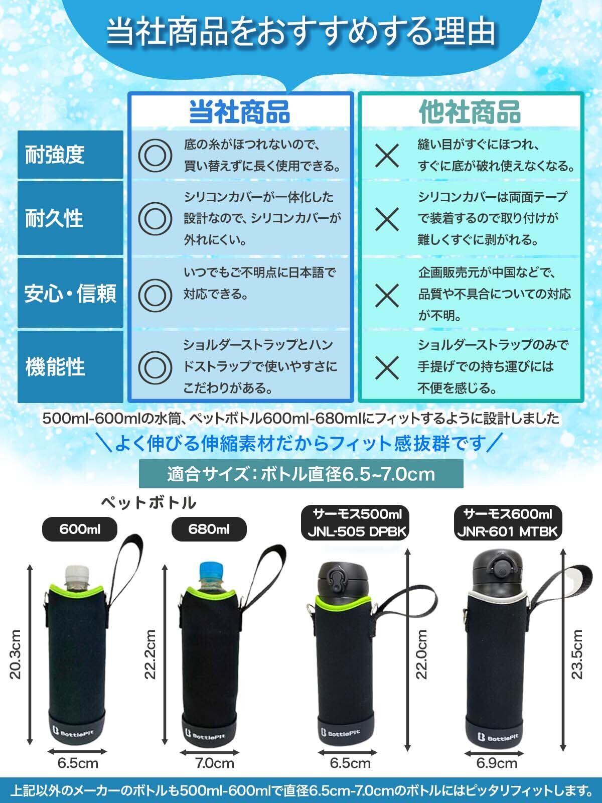 2Way:ハンド&ショルダーストラップ、推奨ボトルサイズ:480mL~500mL、(底部直径が6.5mm前後のストレートタイプにおススメ)