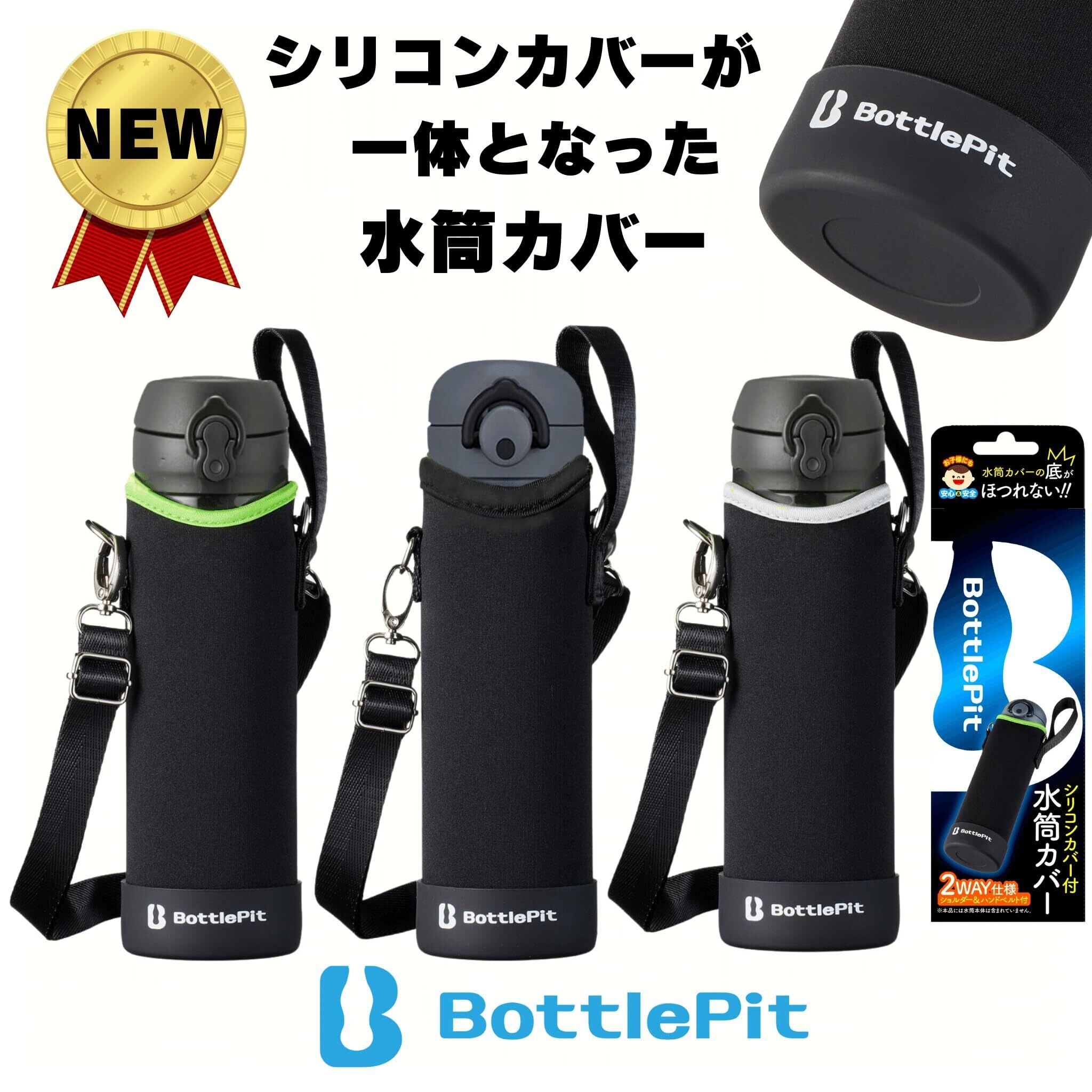 BottlePit 取付け不要の底カバー付き 水筒カバー 500 ml用(ブラックブラック)