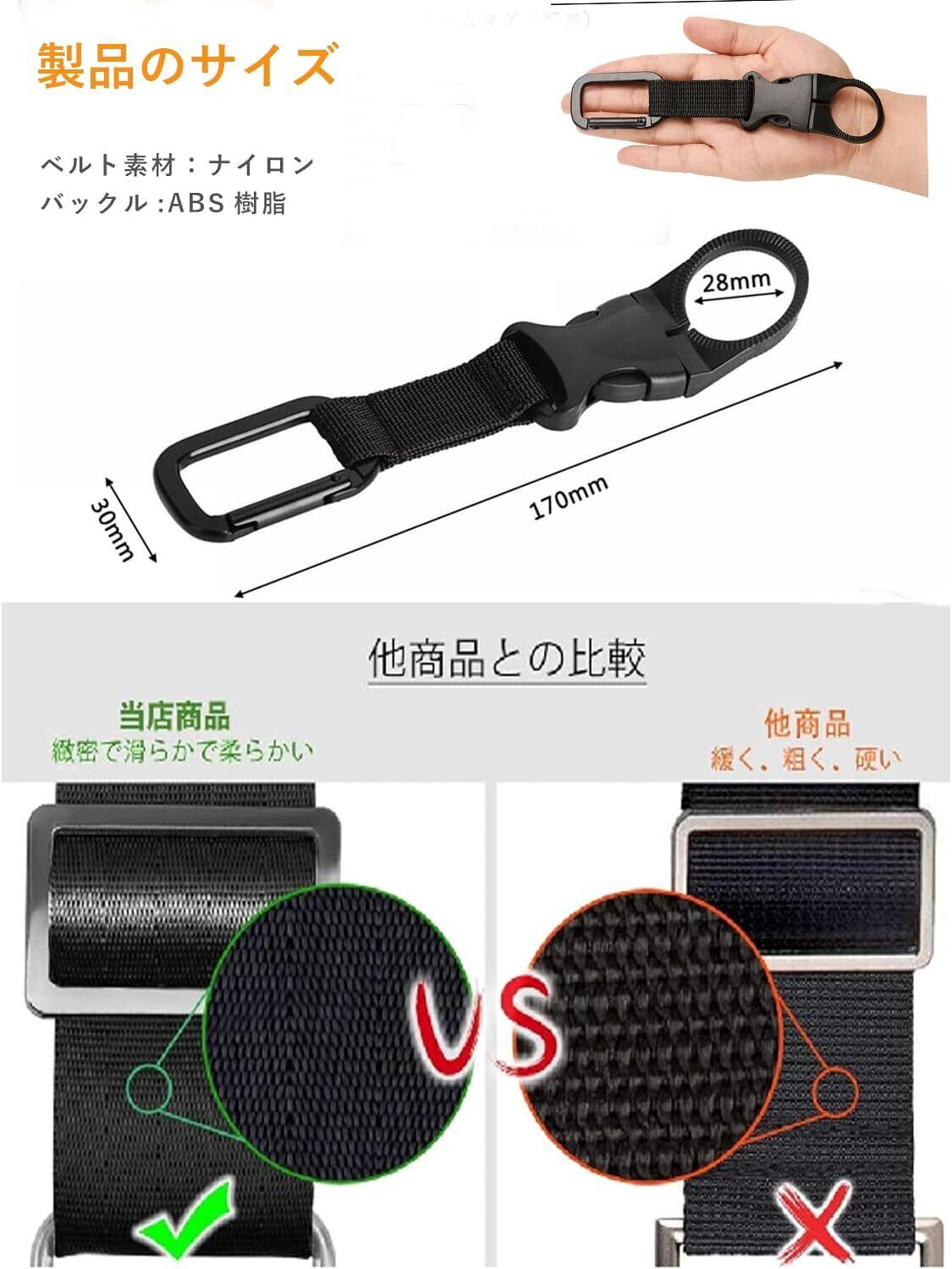 【持ち運びが簡単】 旅行するときは、軽いペットボトルホルダーを持って、水筒をカバンにかけて、喉が渇いた時にリュックから水を取り出す必要がなくても簡単に水を飲むことができます。使用しないときはバッグやポケットに隠したり、バッグやベルトランに付けたままにできるほど小さいです。 邪魔にならないくらい小さいです。