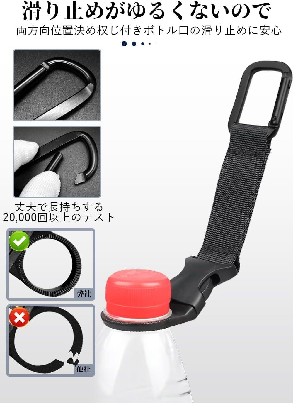 【ペットボトルホルダー】 コンパクトなサイズは、簡単に持ち運びます。水ボトルの端にあるリングをプラスチックボトルの上部に取り付けるだけで使用便利です。