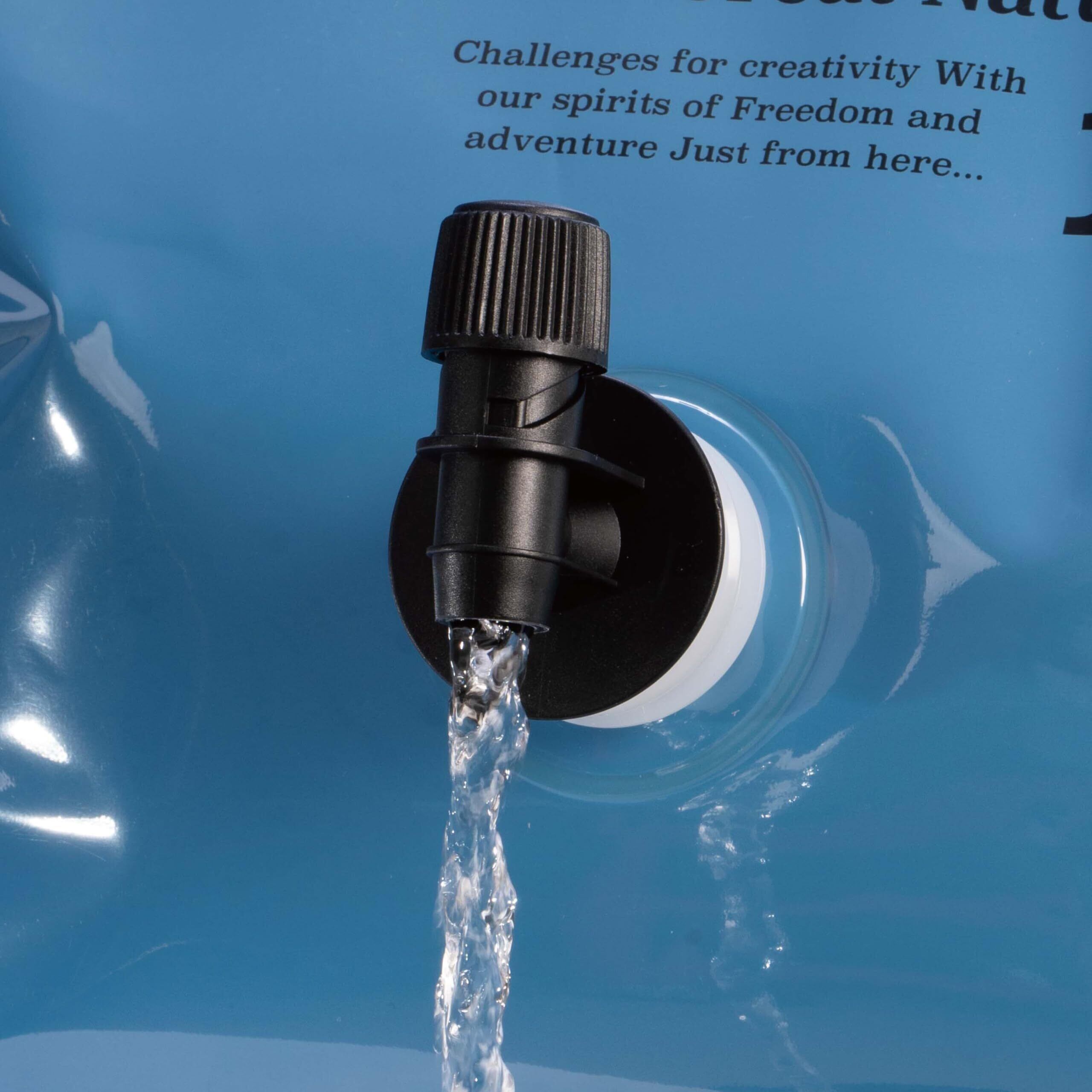 材質:本体/ポリエチレンテレフタラート+ポリアミド+ポリエチレン(3層)、持ち手・コック/ポリプロピレン、コック取付口・給水口・蓋/ポリエチレン、原産国:中国