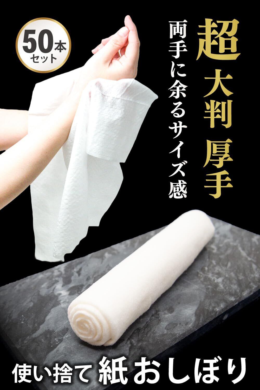 超大判 紙おしぼり 50本セット 使い捨て 丸型 厚手 上質触感 高級 温め冷やし可能 個包装 業務用
