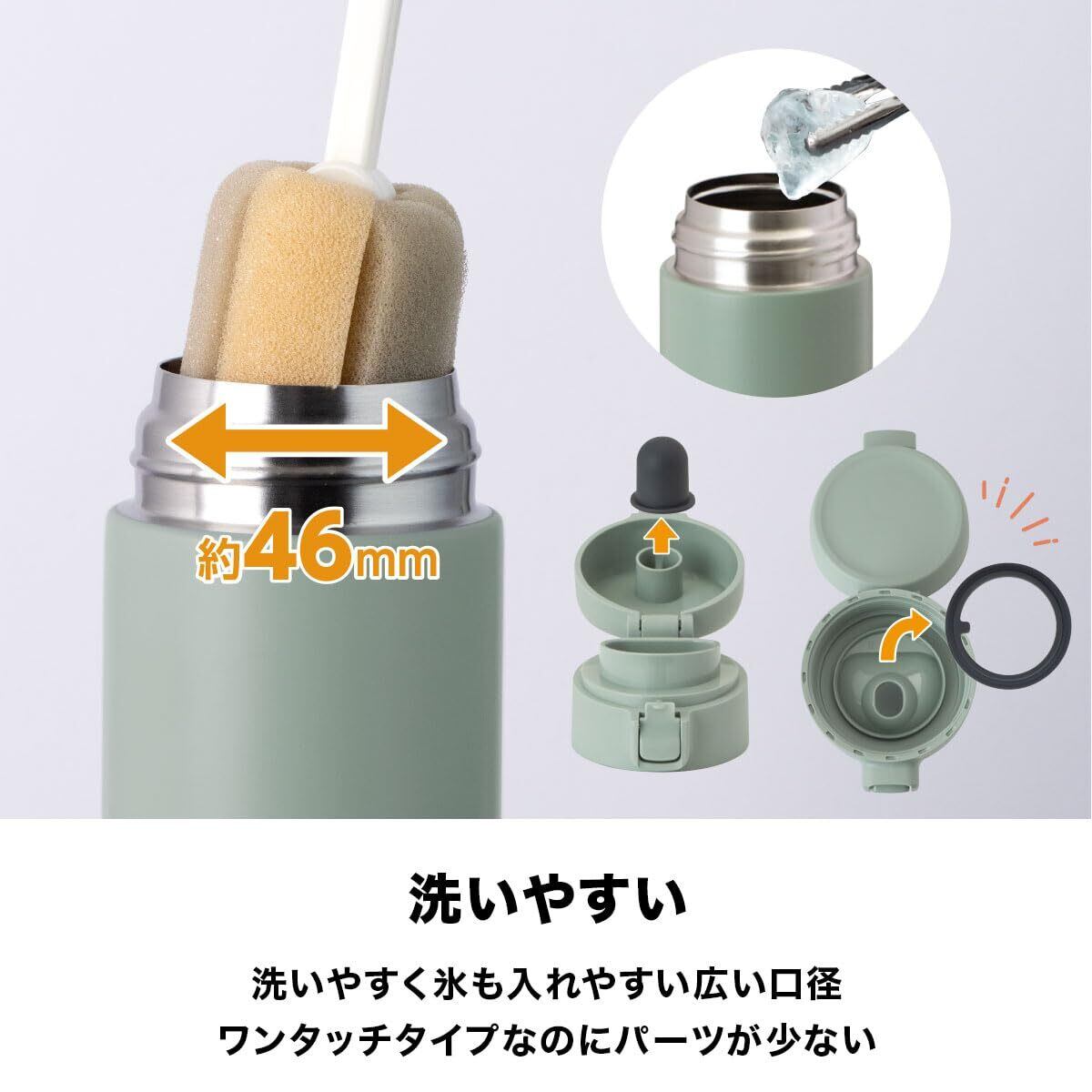 アトラス 水筒 520ml 保温 保冷 真空断熱 ステンレス 軽量 ワンタッチボトル マグボトル 広口 洗いやすい 片手で開けられる スイッチマグ スモーキーグリーン 白湯 AW-521SGR