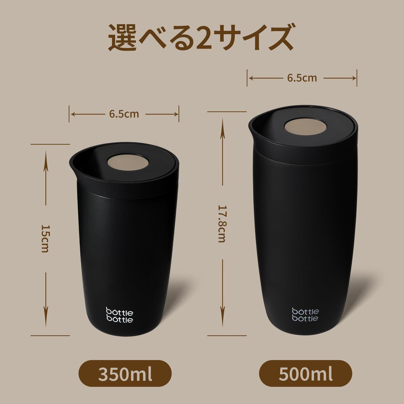 BOTTLE BOTTLE タンブラー 500ml ワンタッチ開閉 漏れ防止 真空断熱 サーモマグ コーヒー お茶用 保温保冷 ステンレス製 携帯マグ ボトル ブラック