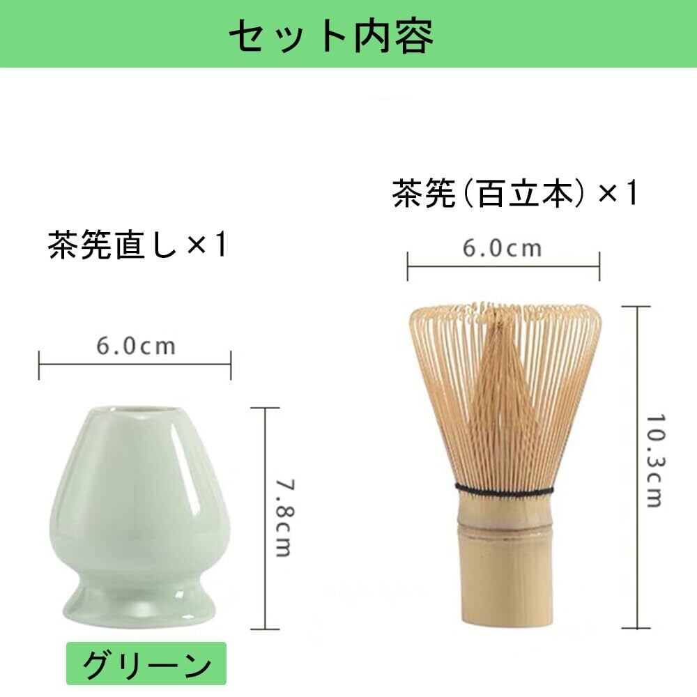 Yoseka 百本立 茶せん 茶筌 茶筅 100本立 茶道具 くせ直し グリーン 通常サイズ 茶せん 茶筌直し 2点セット(百本立&茶筅直し*グリーン)
