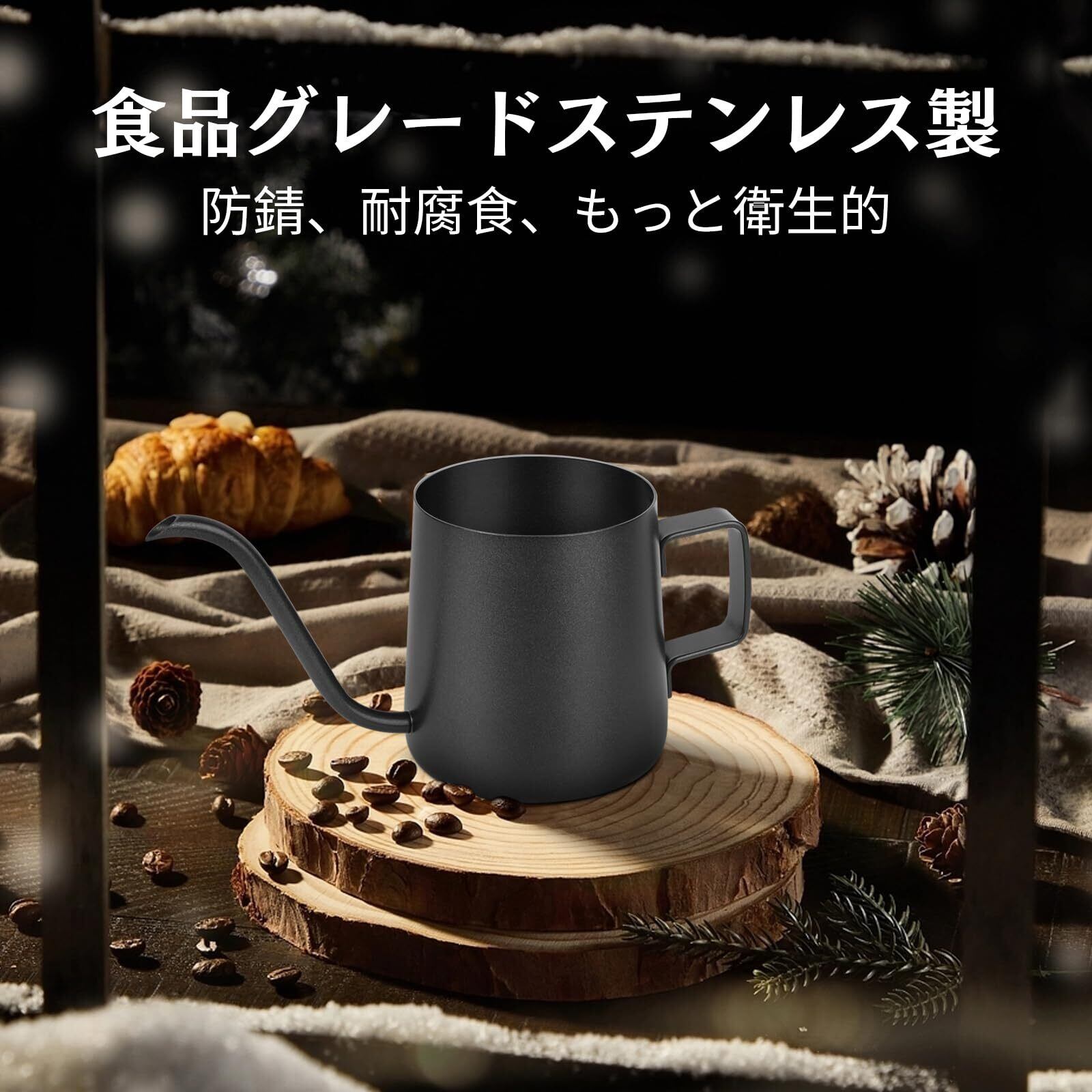 【細口デザイン】このコーヒーポットは5mmの内径を採用しているので、お湯の流速と範囲をよりよく制御し、コーヒーの香りを高めることができます。