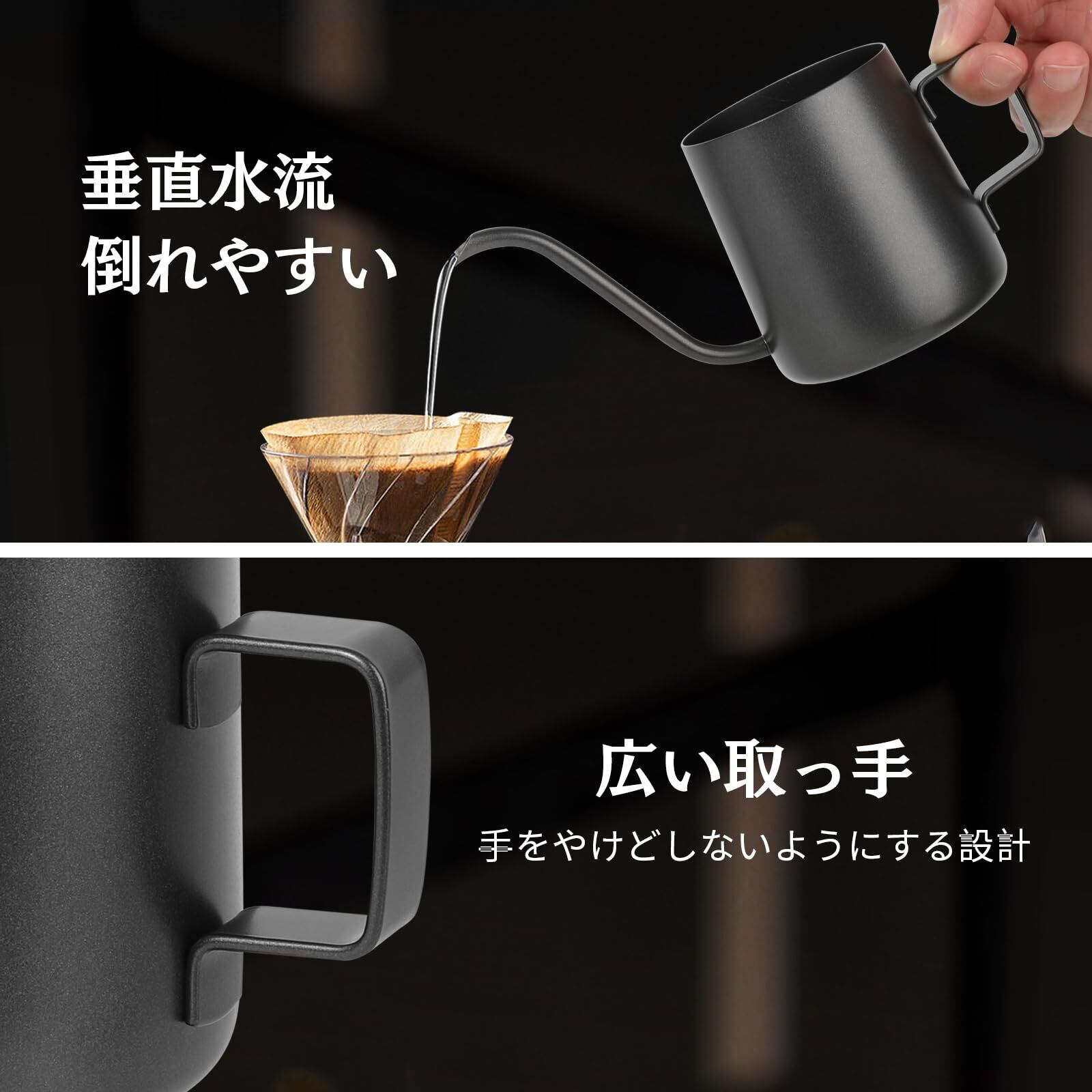 hanmir コーヒーサーバー コーヒーポット 250ML 吊り下げ式 耳 ハンド 注ぎやすい コーヒーケトル コーヒーメーカー 細口ポット オフィス アウトドア 祝い プレゼント DIY 誕生日 退職 記念日 ギフト 贈り物 ブラック