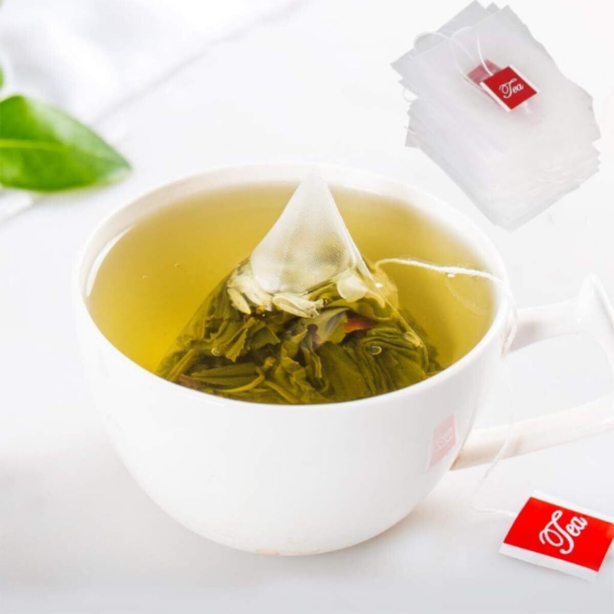 YFFSFDC 使い捨てティーバッグ 100個入り ドローアライン お茶パック 無漂白 不織布お茶&コーヒー用三角紅茶 麦茶 水出し 三角コーナー茶こし濾過袋 耐熱 (S)