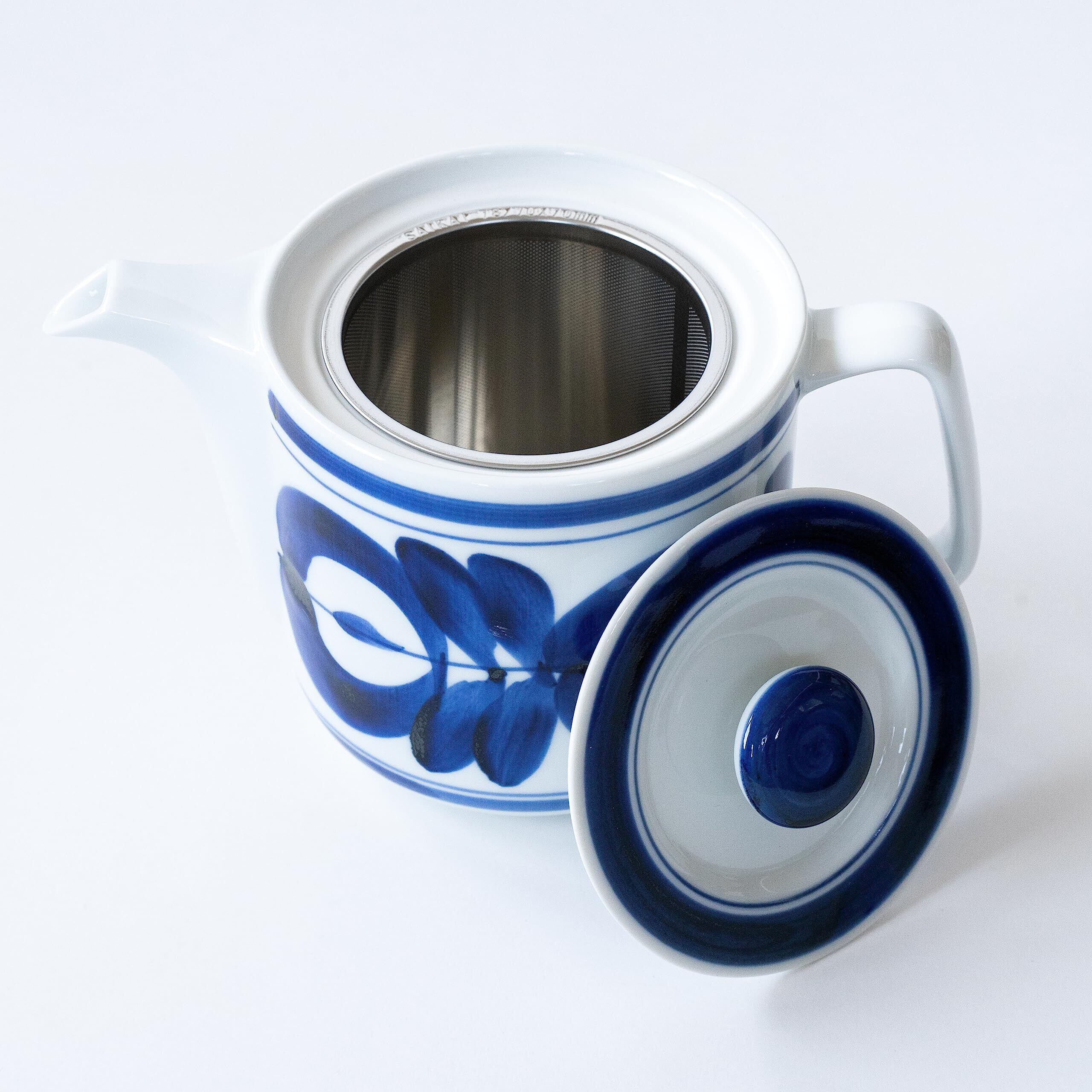 西海陶器 波佐見焼 ポット 大きい マジョリカ柄 容量約550ml 洗いやすい 茶漉し 付 (スーパーステンレス 茶こし付) はさみやき 食器 紅茶 お茶 緑茶 和食器 日本製 60157