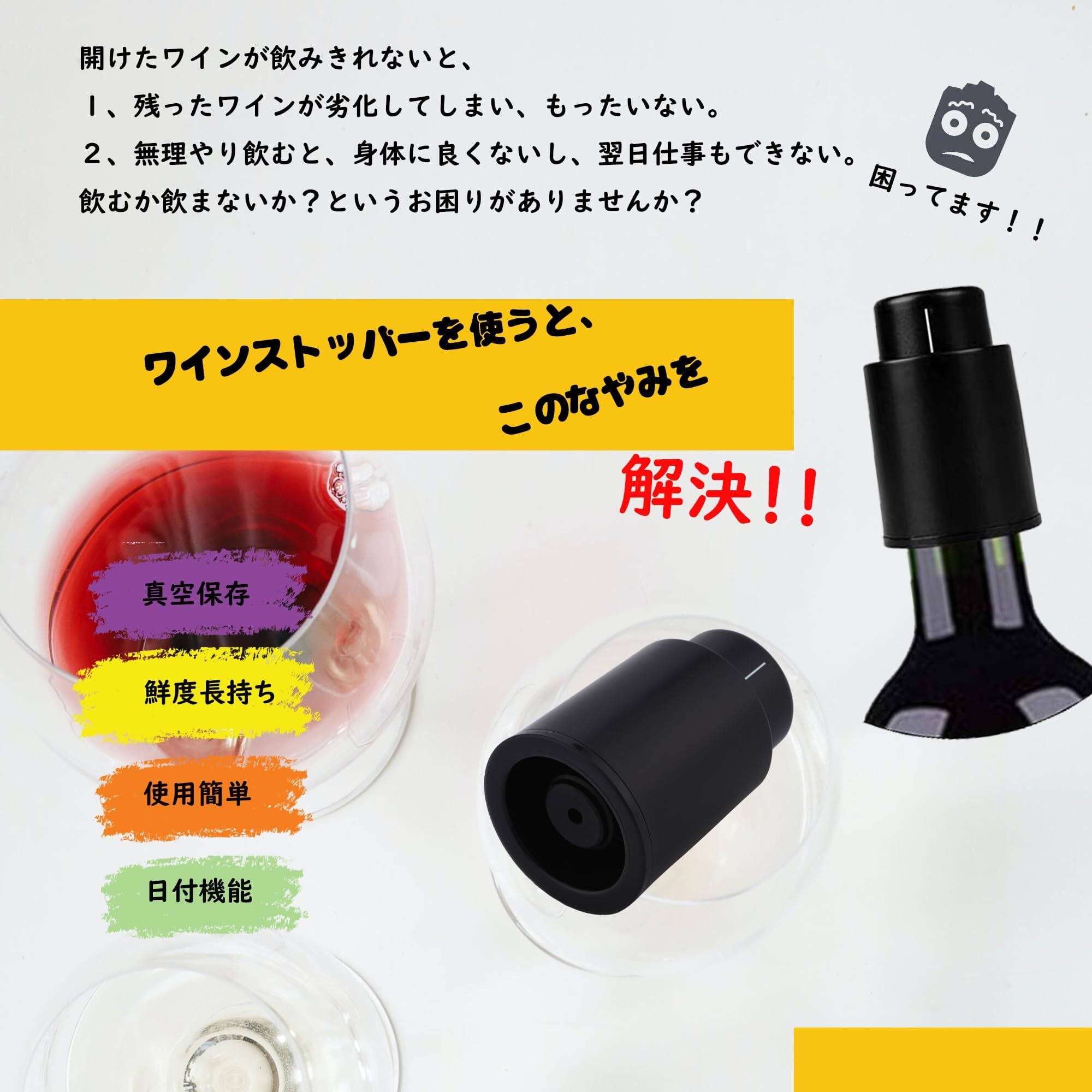 Lazysong ワイン栓 ワインストッパー 鮮度長くキープ シャンパンストッパー 真空ストッパー ワイン保存 酸化防止 真空保存 日付スケール ソムリエ推薦/国内検査済み