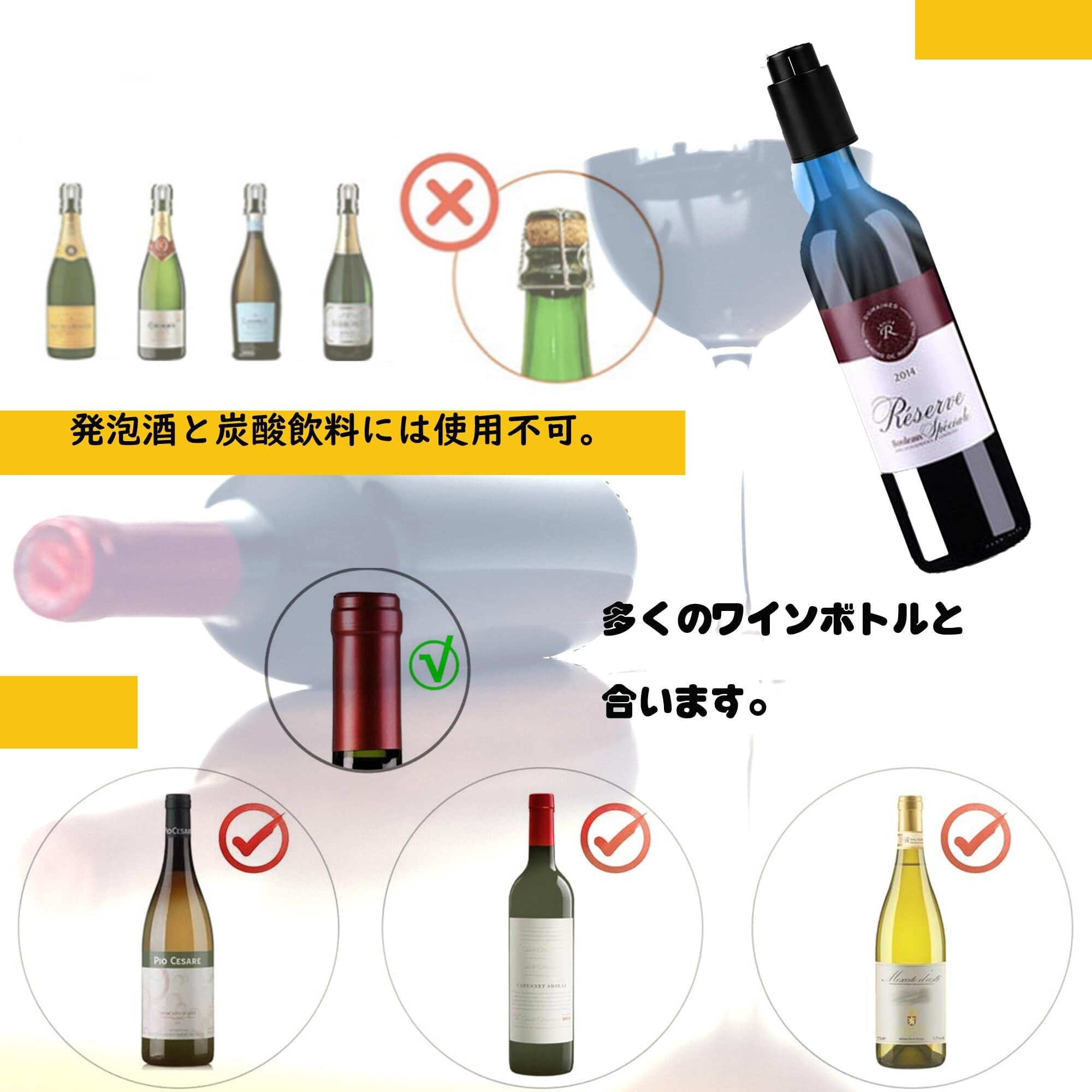 【使用方法】.1、ワイン栓をボトルの口に差込みます。 2、プラグを数回に押して(下にさせることができないまで)、瓶の中の空気を抜き出します。3、ワインストッパーの上部を回して、保管日を選びます。