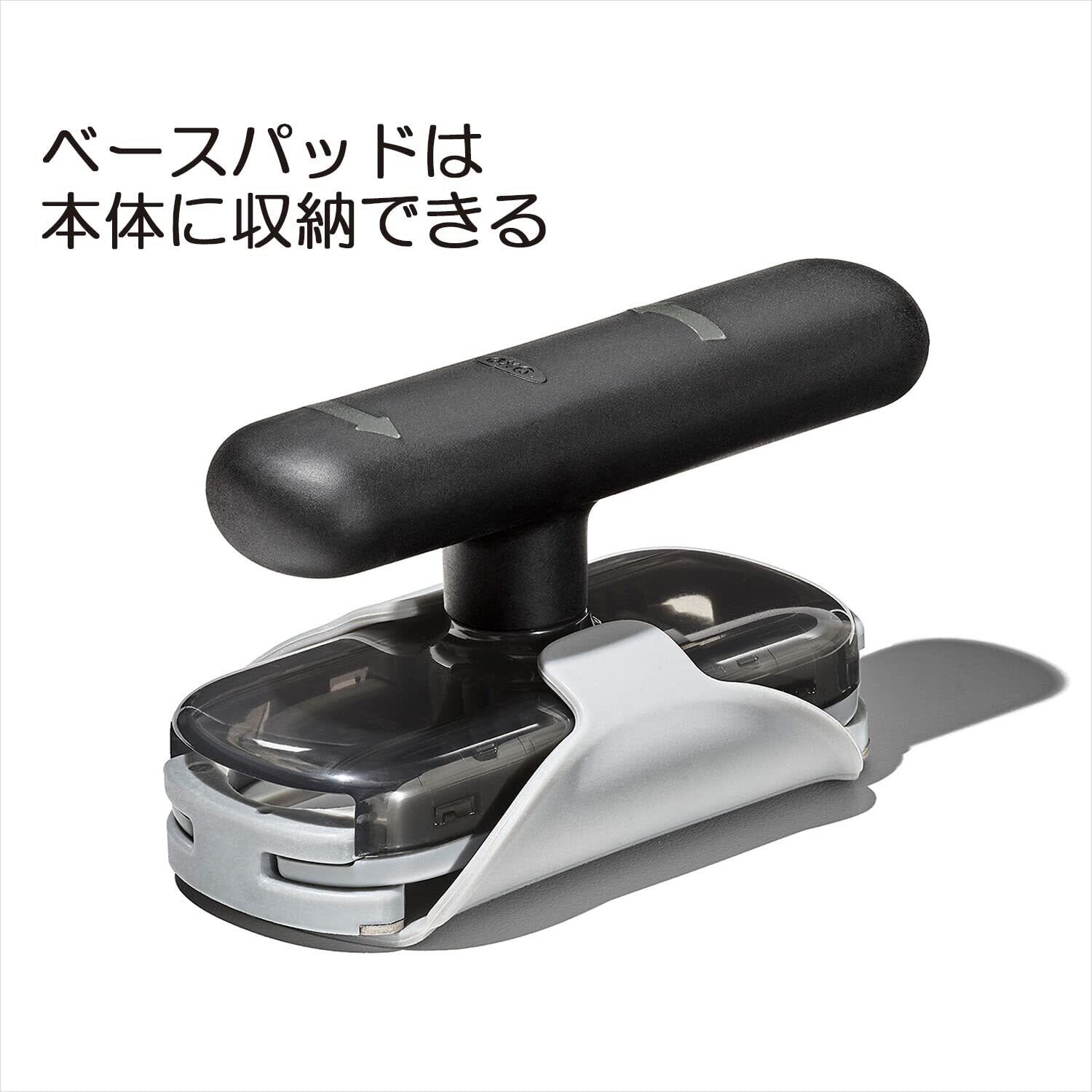 開けにくいボトルやビンのフタをより簡単に開けることができるベースパッドとオープナーのセットです。さまざまなフタのサイズに対応(約20mmから84.9mm)しており、しっかりとフタをとらえて、手や腕に負担がかかりにくいステンレスの歯を採用しています。回転させるだけで固定される簡単設計で、ハンドルややわらかくてすべりにくく、右利きでも左利きでも使用できるのが特長です。ベースパッドは瓶の下に敷くことですべりにくくなり、より少ない力で蓋を開けることができます。