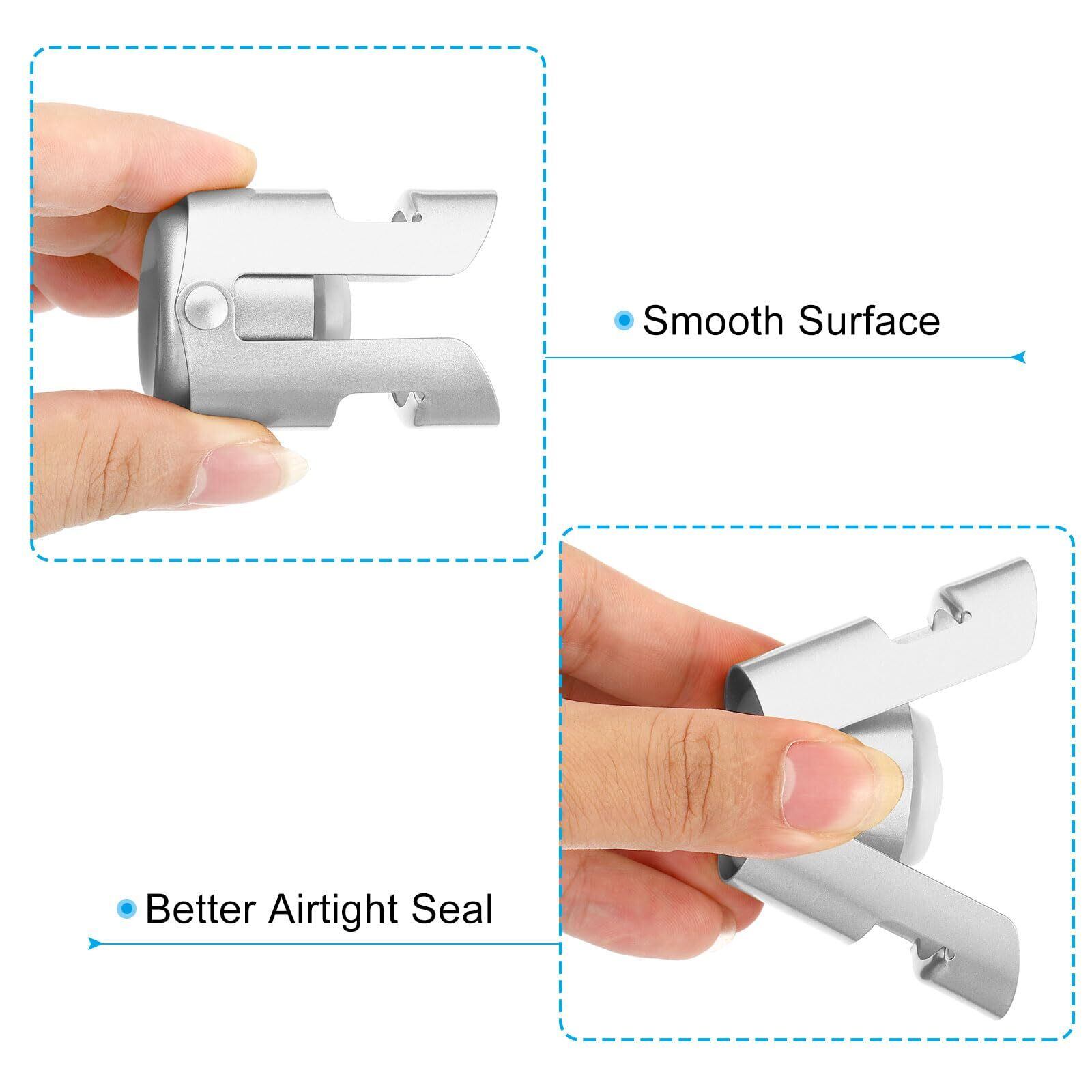 これらのシャンパンストッパーはステンレス鋼素材で作られており、強くて硬く、滑らかな表面です。ストッパーの底にはシリコンが付いており、開いたシャンパンボトルを保存する際の気密性が向上します。