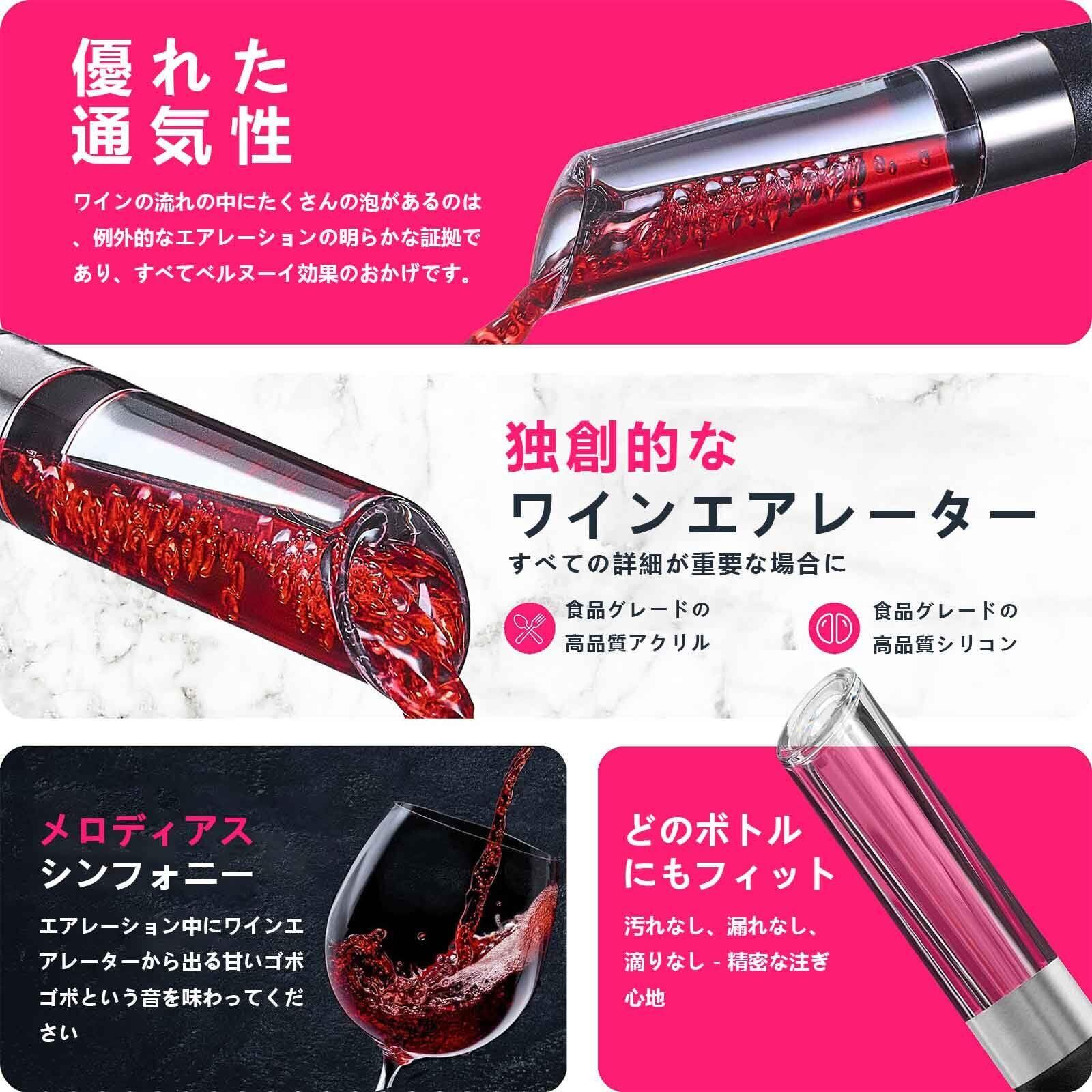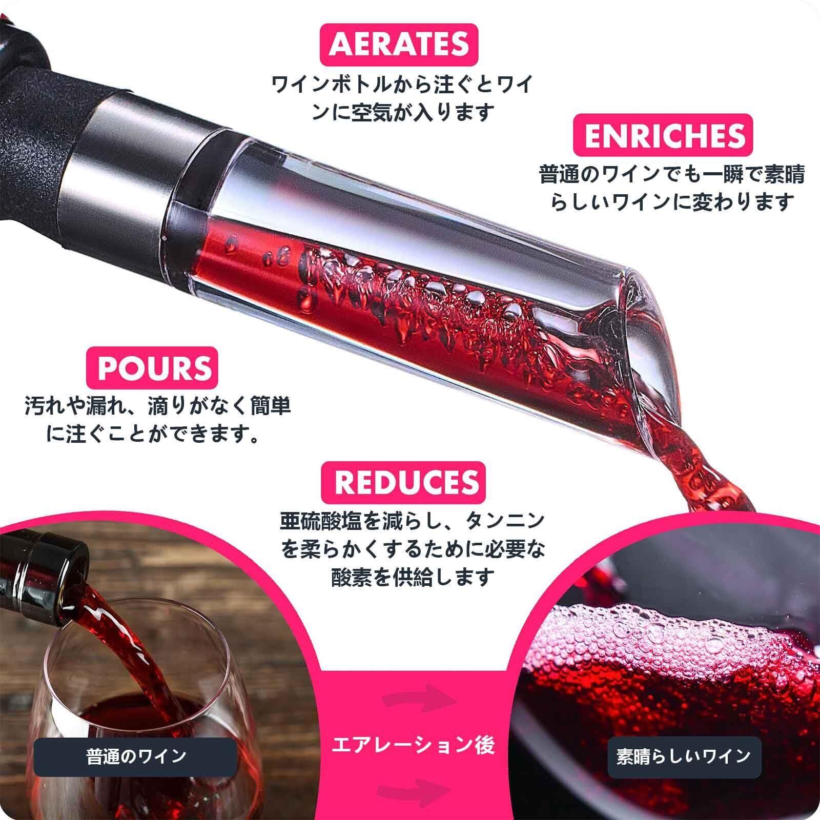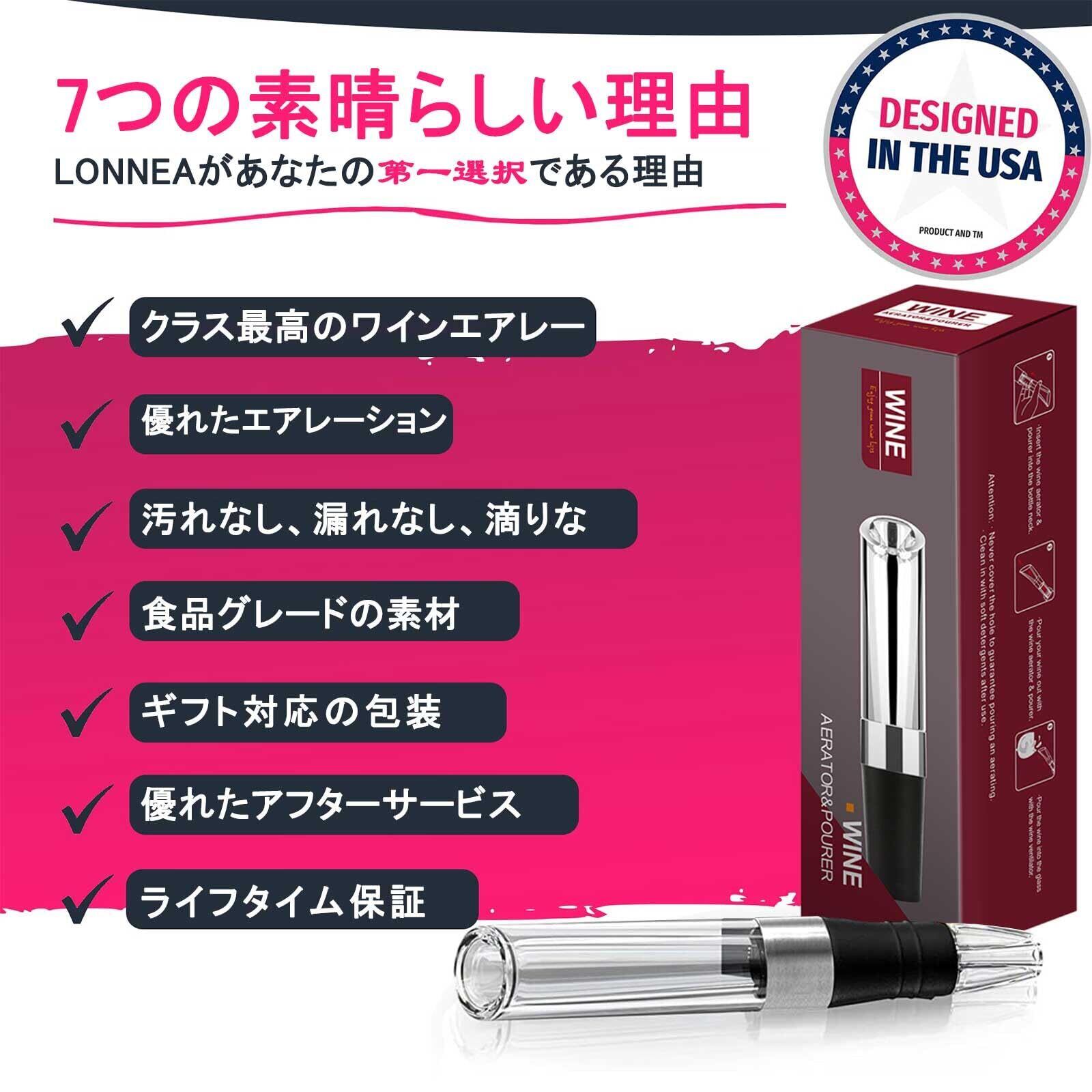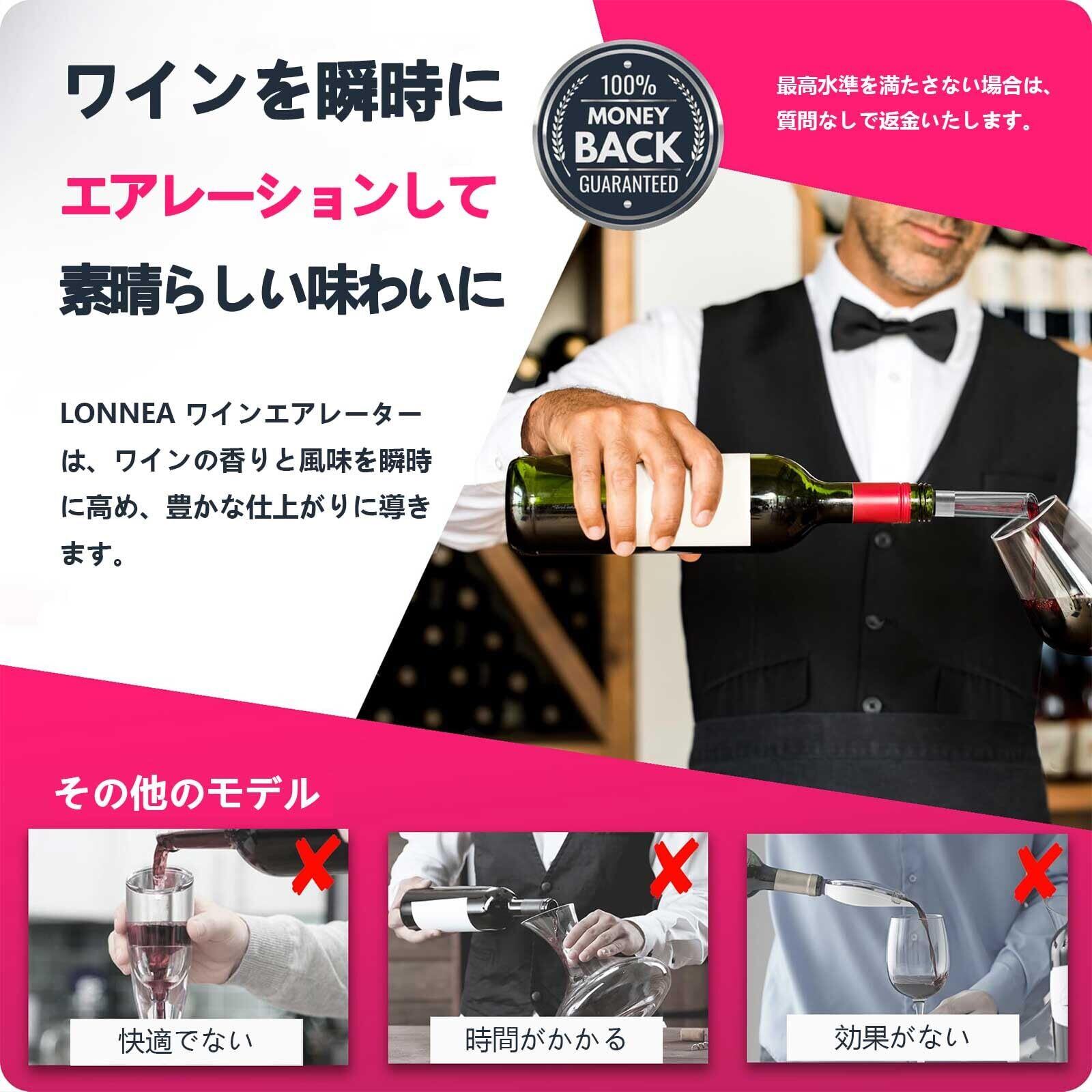 LONNEA ポアラー ワインエアレーター デキャンティング 快速 エアレーション ワイン愛好家向け プレミアムワインポアラー 1000円のワインを6000円のワインへ変える魔法の ポアラーボトルに挿すだけでワインが液だれせず美味しくなるワインポアラー
