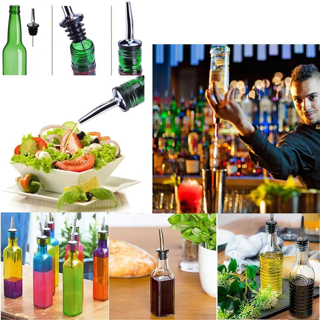 ボトルポアラーはフリーポアラー、ワイン注ぎ口、スピリッツ、リキュールを注ぐことの理想的なツール。ワインボトル、赤ワインボトル、ウイスキーボトル、オリーブオイルボトル、酢注水口、その他の調味料ボトルなどに適しています。