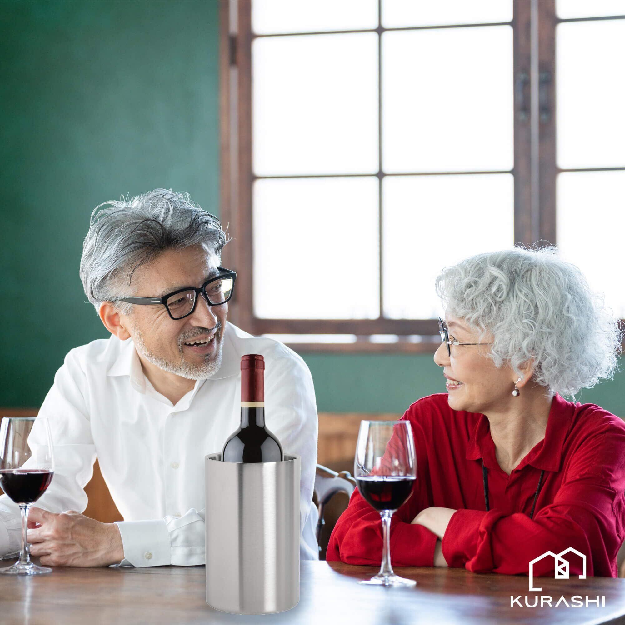 KURASHI ワインクーラー 卓上 ステンレス 二重構造 シャンパン ボトルクーラー 直径12cm×高さ19cm
