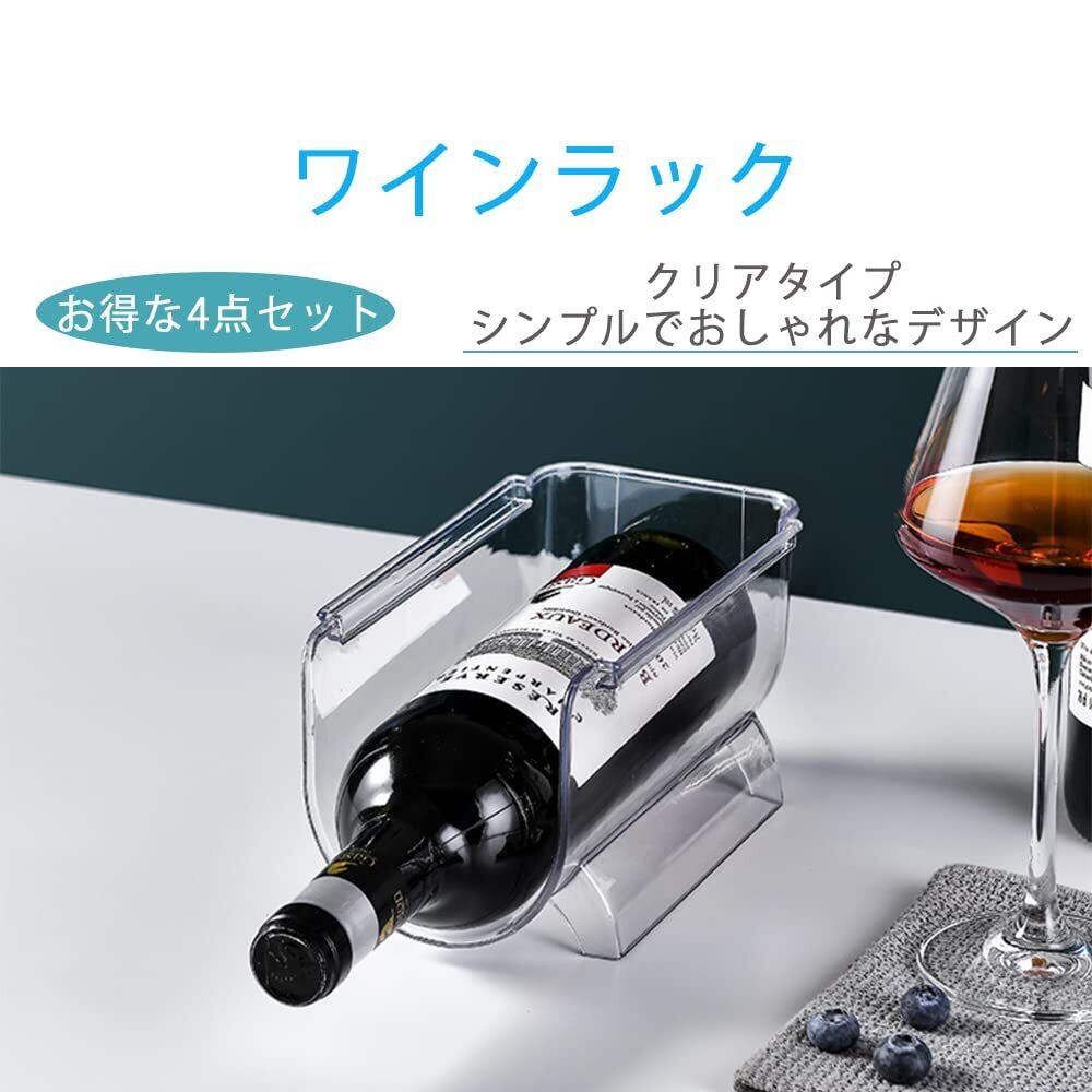 冷蔵庫の中でワインを冷やす際に使えるワインラック。クリアタイプのワインラックでシンプルでおしゃれなデザインになっています。お得な4個セットですので、たくさん必要な方におすすめです。商品サイズ:20.5cm×11.5cm×10.5cm(1つあたり)