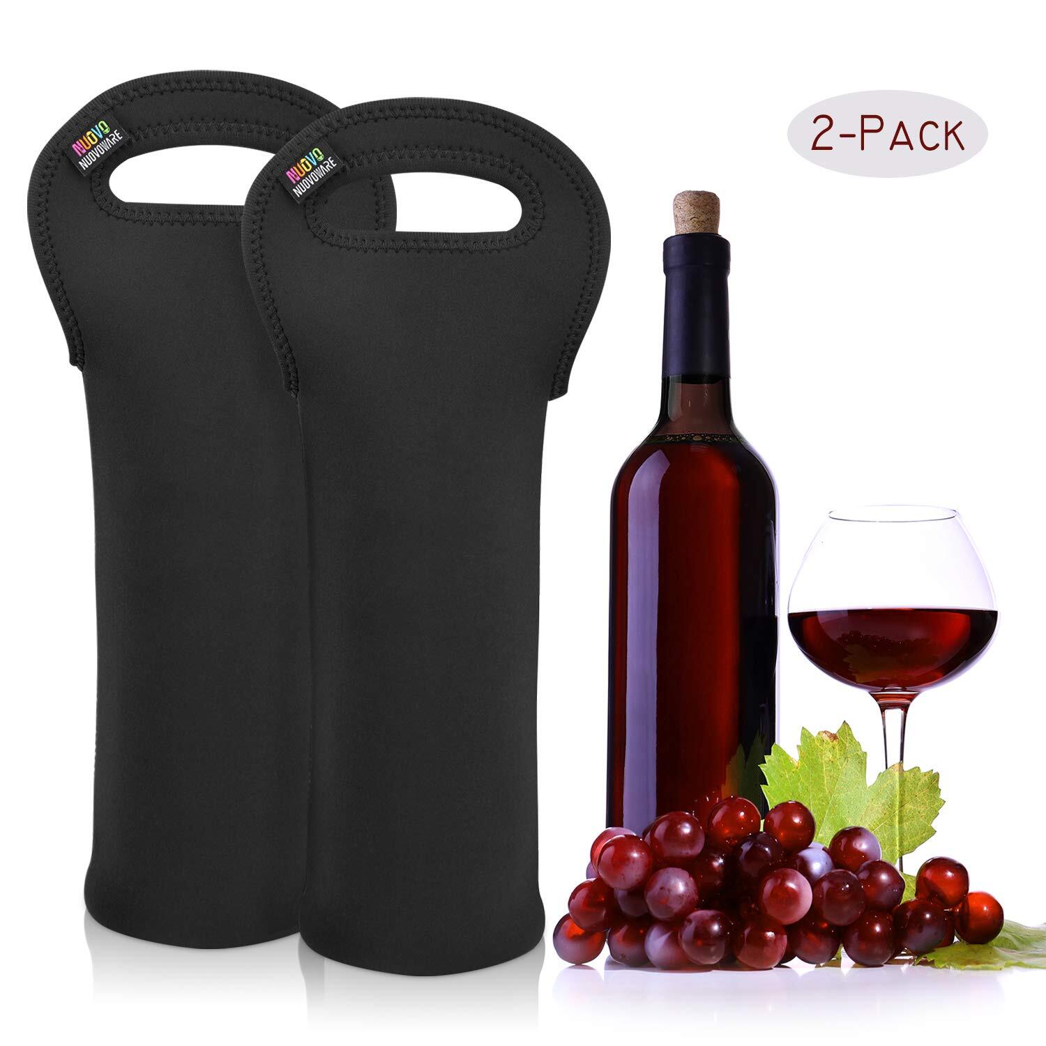 Nuovoware ワインバッグ 2個セットポータブル ワインバッグ キャリア保冷バッグ 保存 断熱 安全 防水 絶縁 涼しさ 乾燥 ワイントート ボトルバッグ 750ML Black + Black