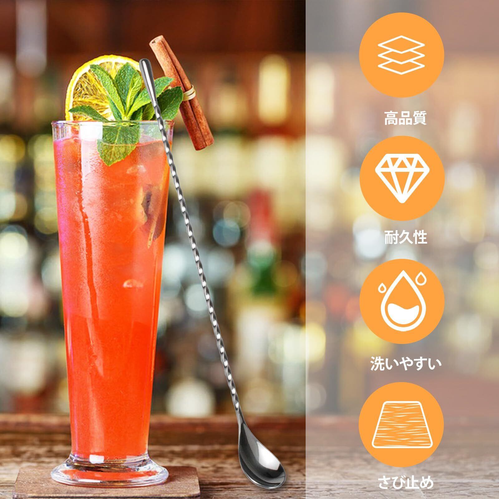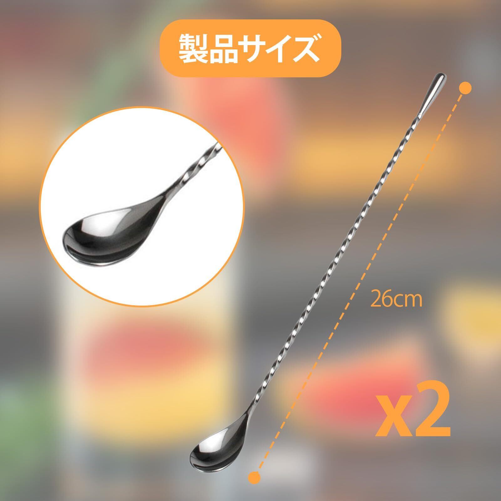 商品仕様: 長さ26cmのステンレス製バースプーン2本セット、カクテルやハイボールの調合に最適
