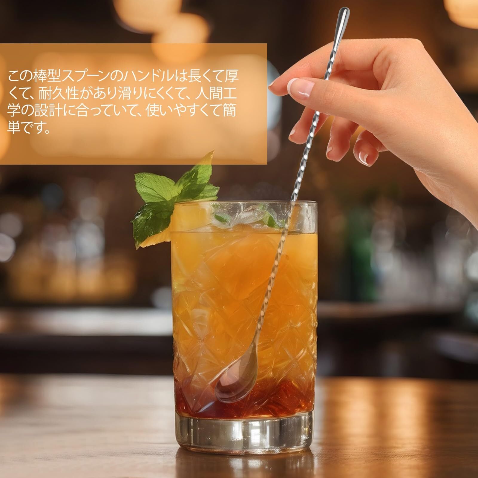 使いやすさ: 長めの柄でグラスの底まで簡単に届き、スムーズな攪拌操作が可能