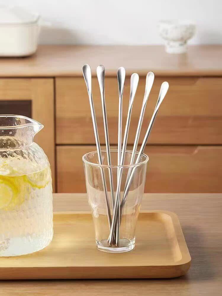 長いスプーン:長のハンドルので普段アイスコーヒー、ジュース、カクテルなどを飲むときに、マドラースプーンなどとして使用することができます。そしてドリンク、氷、スムージーまたはシェイクを混合することに理想的なツールです!バー、ホーム、レストラン、コーヒー屋さん、飲料店、パーティー用に適用長いスプーン。