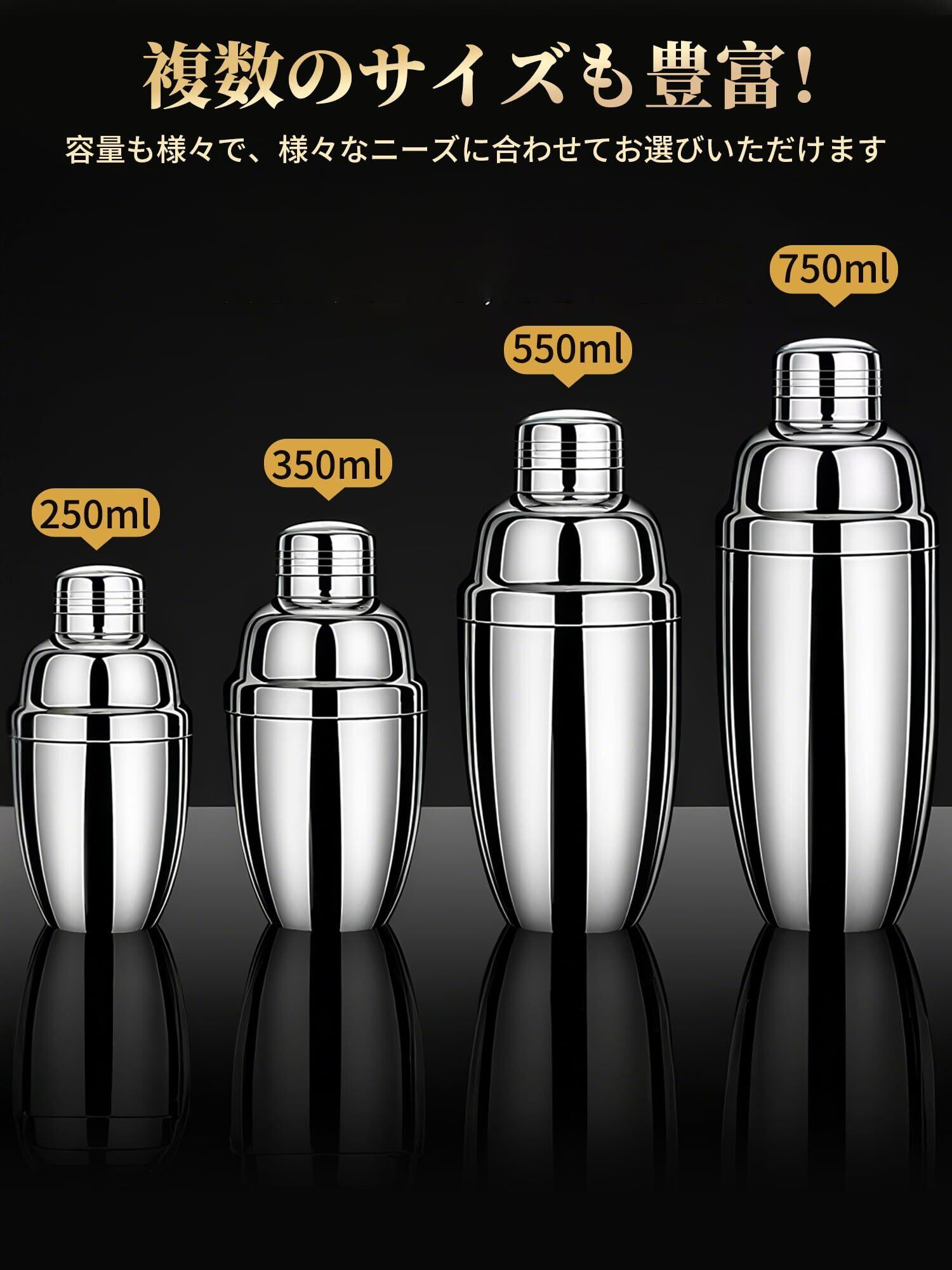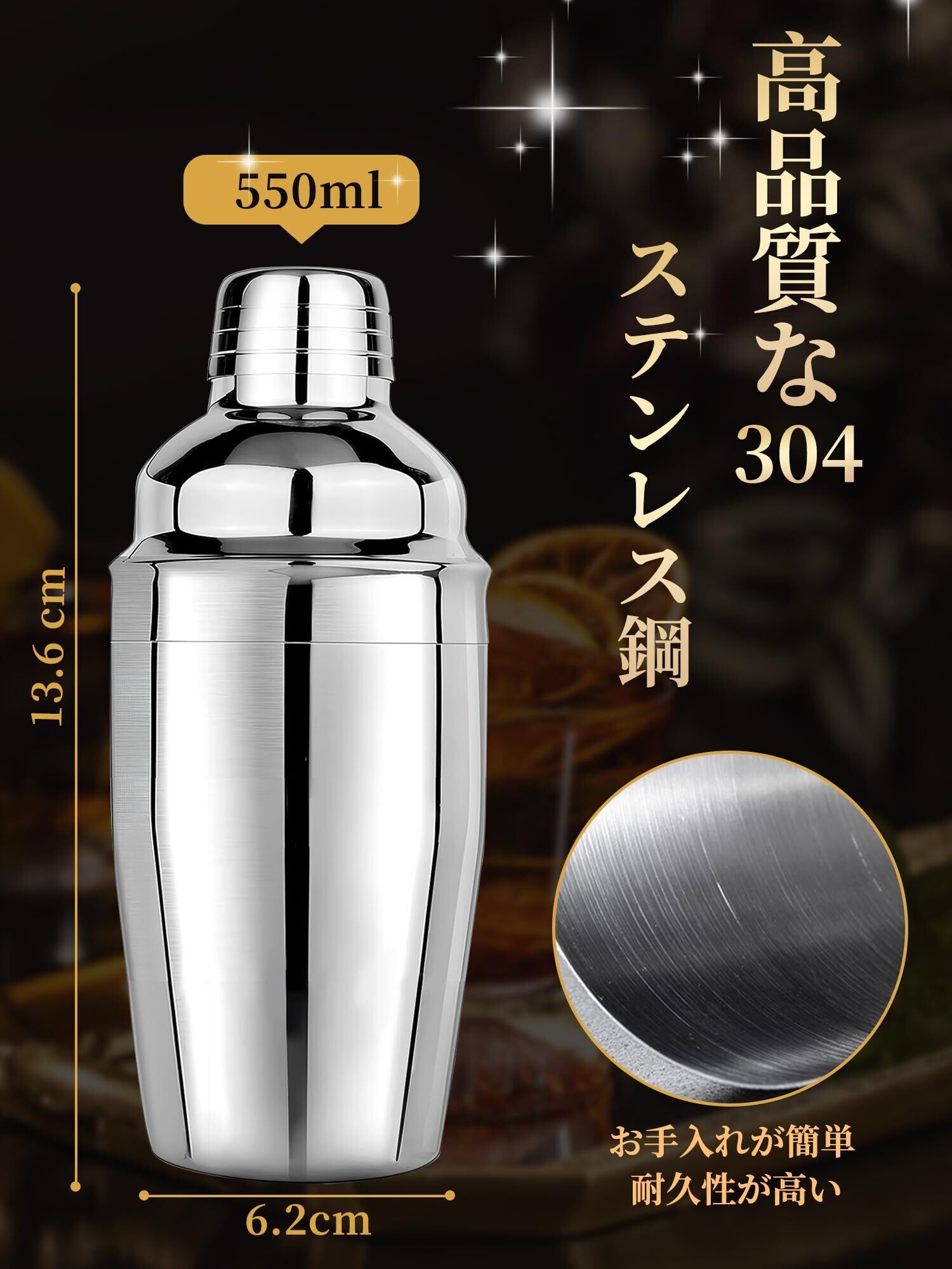 YUXIKIS カクテルシェーカー スタンダードシェーカー550ml ミキサー バーテンダーの道具 完全ガイドがついています 初心者用 業務 自宅用 (550ML)