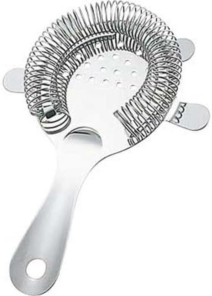 ミキシンググラスにスプリング部分をはめ、ステア(かき混ぜる)したカクテルの氷などをおさえ、カクテルだけを注ぐことができるカクテルストレーナー