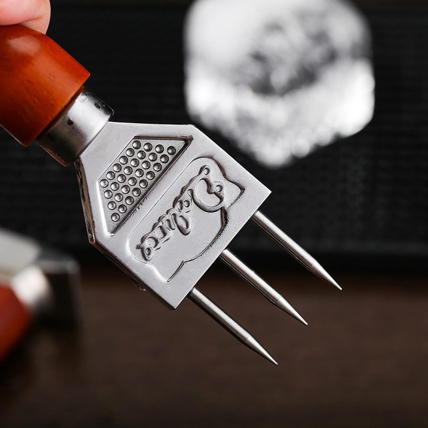アイスピック 3本刃 ステンレス鋼 錆防止 氷割り (ピーチカラー, ドット)