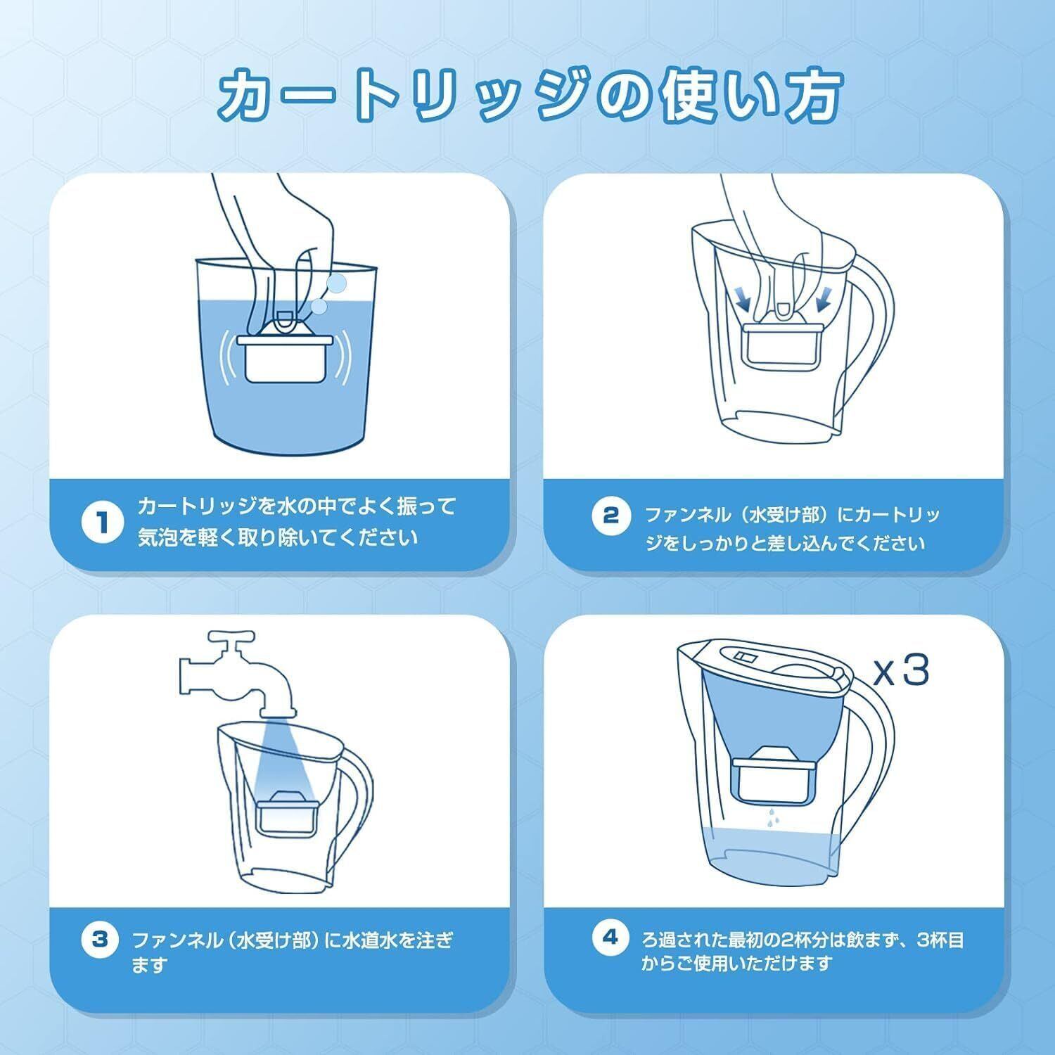 【高性能フィルター】ブリタ交換用なフィルターカートリッジは、カルキ臭や塩素臭、さらには鉛などの重金属を効果的に除去し、口当たりのよいおいしい水を提供します。日常の飲料水や調理に最適です。