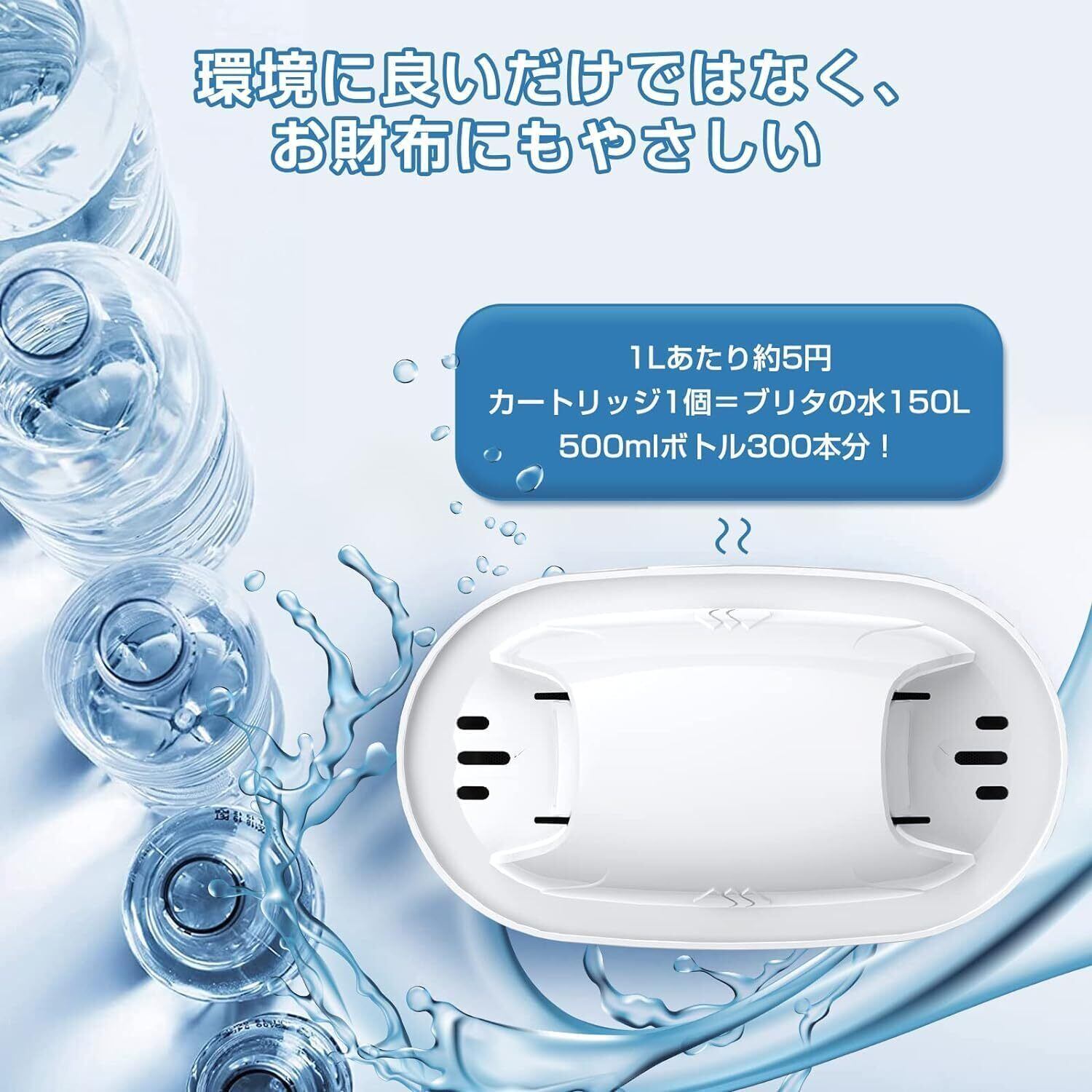 【経済的で環境にもやさしい】6個入りのセットで、最大約8ヶ月間使用可能(1日3.5L使用の場合)。ペットボトルのミネラルウォーターに比べてコストを大幅に削減でき、プラスチックごみも減らせます。