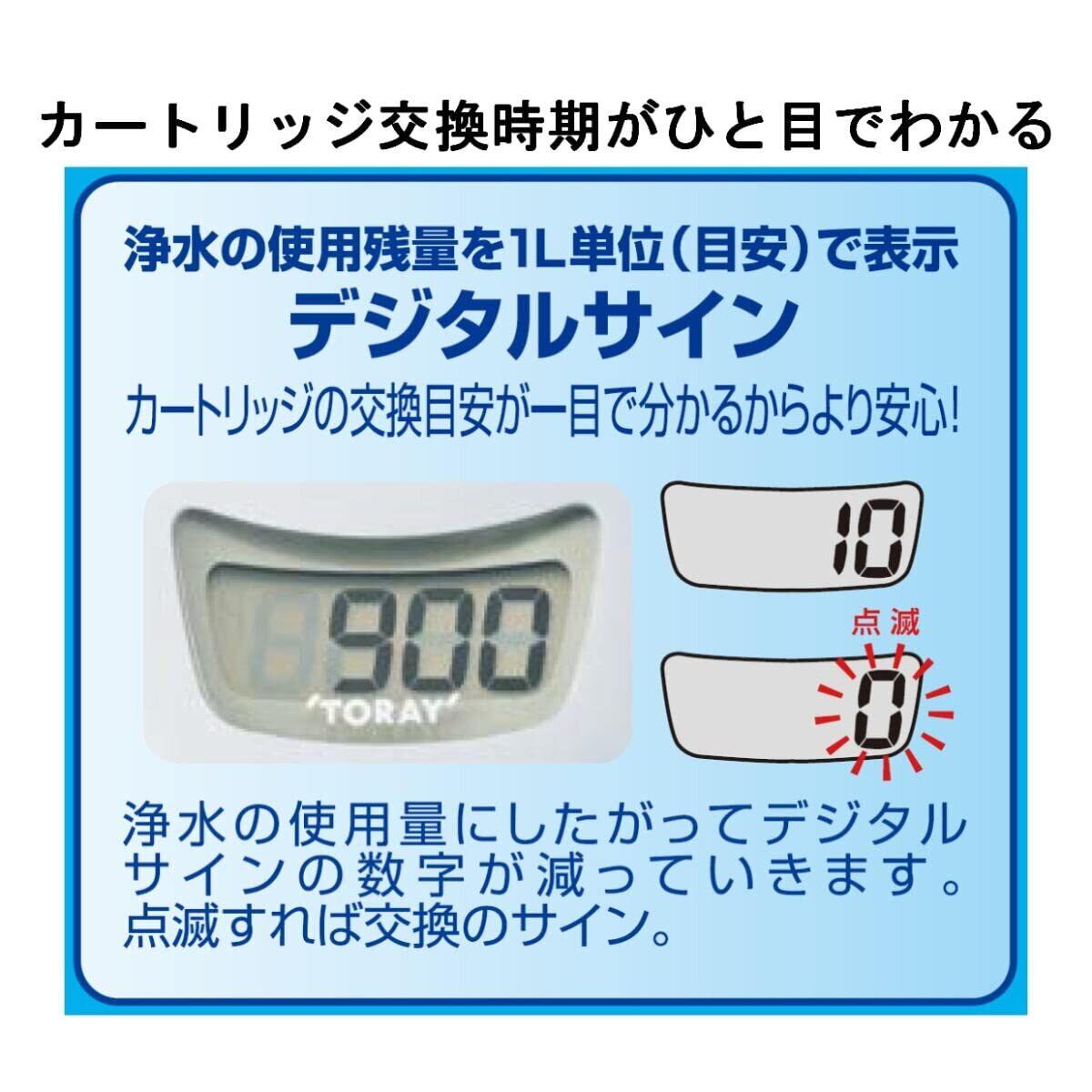 【洗える吐水カバーでいつでも清潔】水の出口である吐水口カバーが簡単に取り外し可能。外して洗えるので、いつでも清潔に保てます。【大きく見やすいデジタルサイン】浄水の使用残量を1L単位(目安)で表示するので、カートリッジの交換時期を忘れず安心。無駄なくカートリッジを交換できます。
