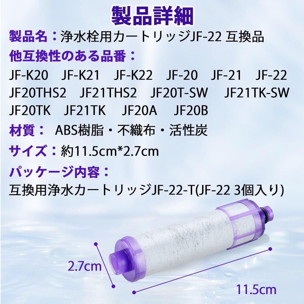 【商品仕樣・3個入】形名:JF-22-T / SF-T21・SF-T20(代替品)交換用浄水カートリッジ。互換品です。材質:ABS樹脂・不織布・活性炭。