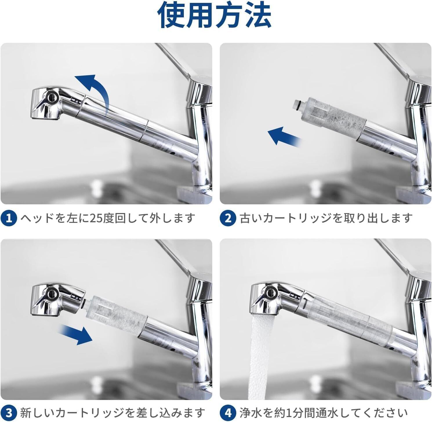 高性能活性炭を使用し、業界最小のコンパクトさを実現。水栓本体の取回しや、カートリッジ交換がしやすく、保管場所も取らない使い勝手の良いカートリッジ