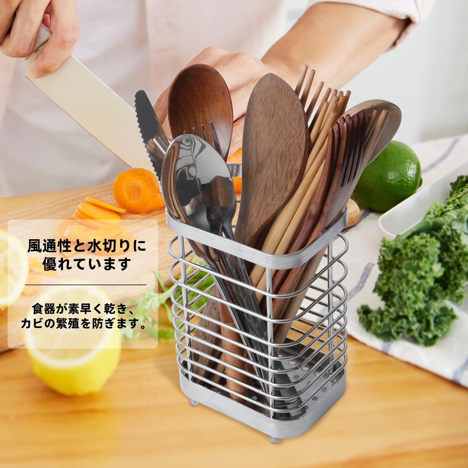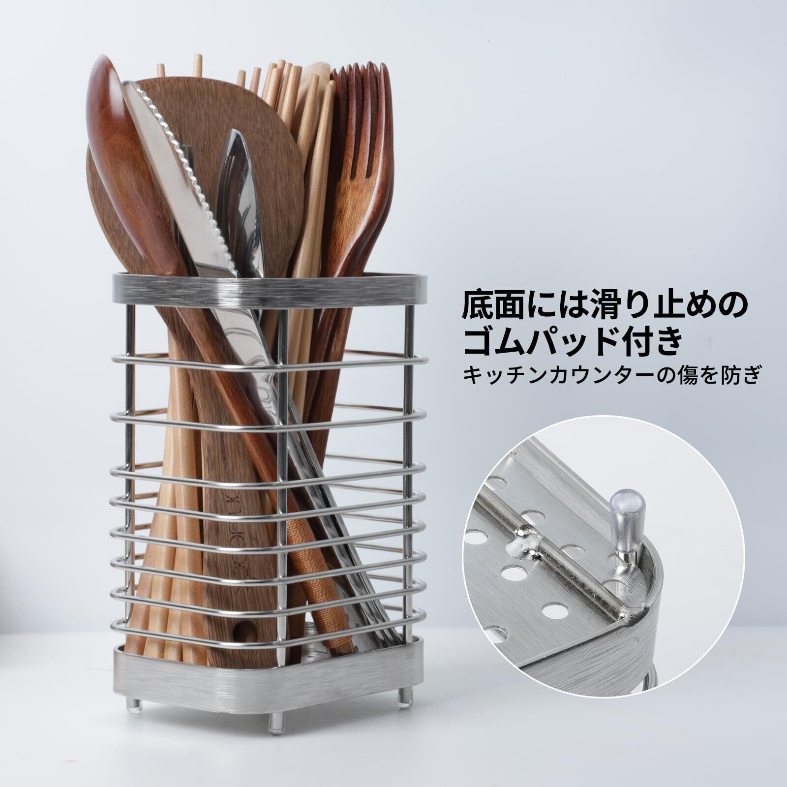 Toski 箸立て カトラリースタンド 18-8ステンレス製 キッチンツールスタンド 水切り シルバー