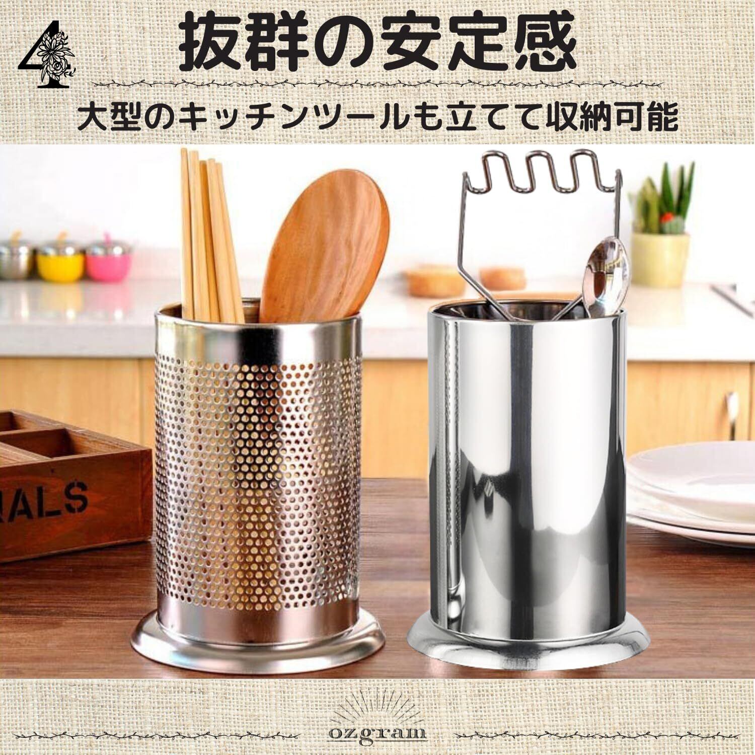 ozgram 箸立て カトラリースタンド 【パンチングタイプ】 卓上 水切り 丸型 穴付き 調理器具 業務用 キッチン 収納 お箸 フォーク スプーン おたま ステンレス製