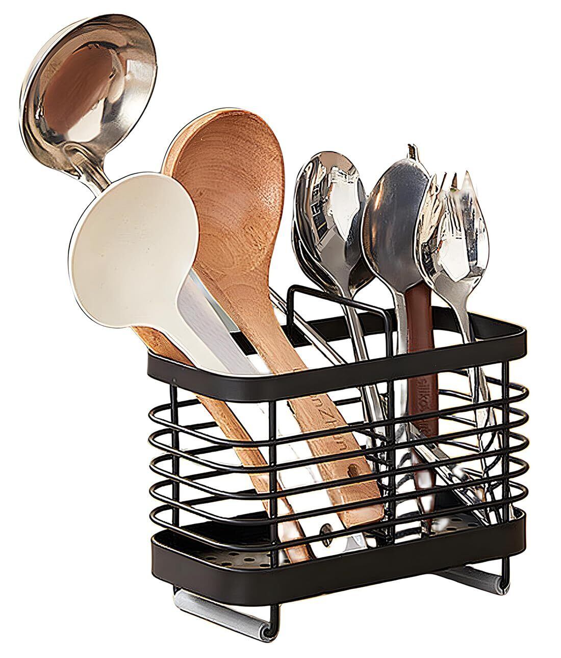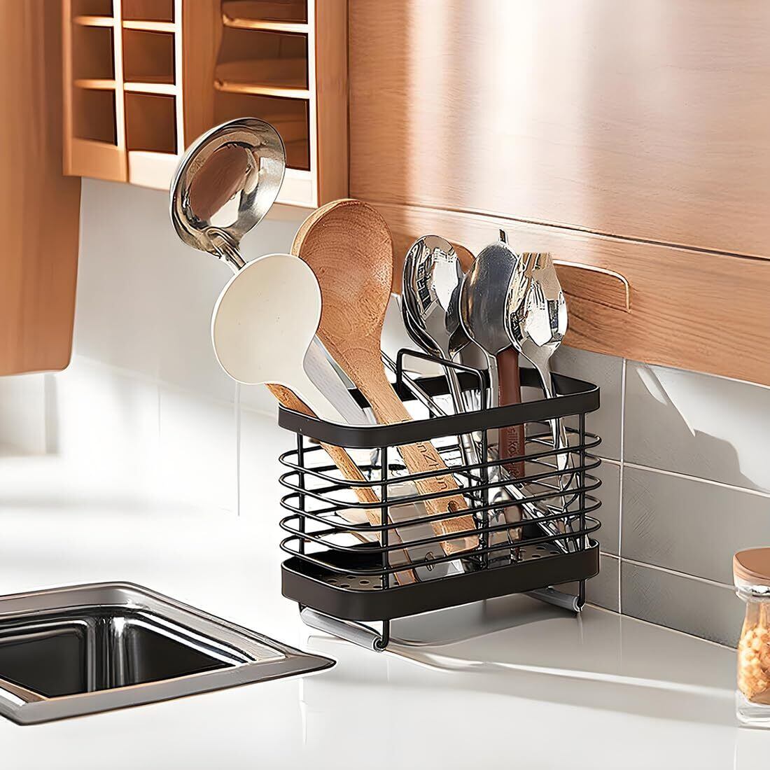 箸立て はしたて スプーンラック フォーク収納 カトラリーケース箸立てラック 箸入れ 箸スタンド 食器収納 キッチンツールスタンド ステンレス製 台所収納 カトラリースタンド 通気性 (ブラック)
