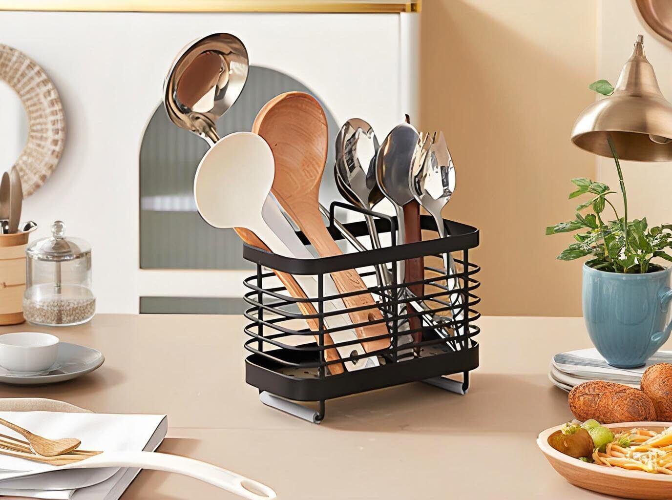 【シンプルでおしゃれ】食器キッチンツールをスッキリ清潔に収納、洗った後の風通しも快適できます