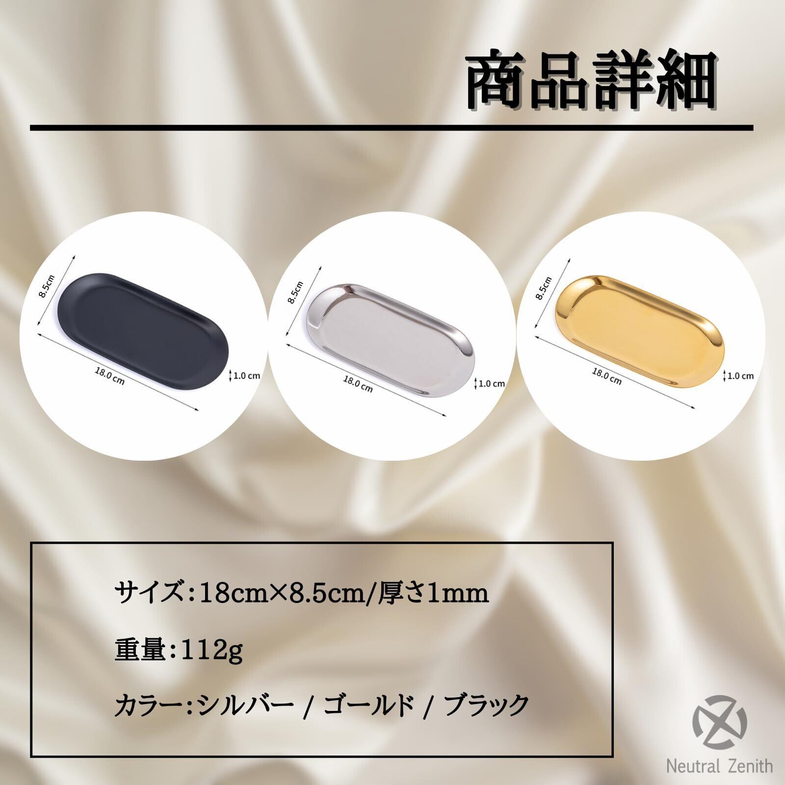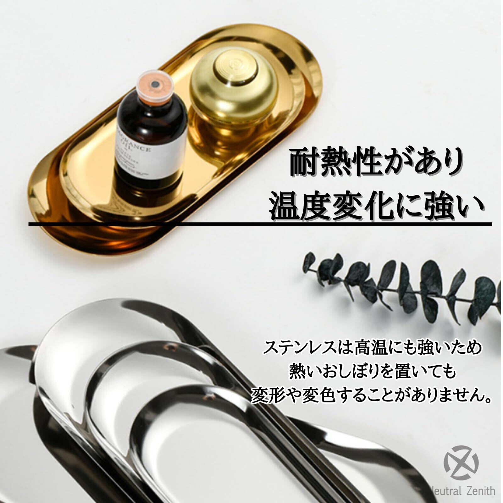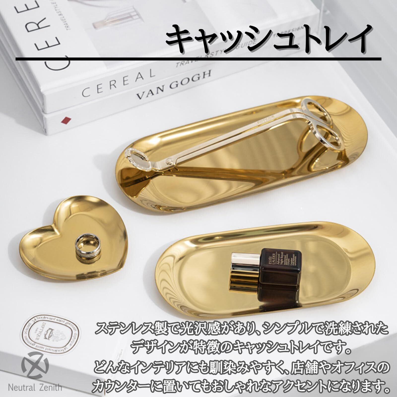 Neutral Zenith キャッシュトレイ ステンレストレー コイントレー 小物 ペン 金属 会計皿 おしぼり置き 釣り銭 楕円形 (ゴールド)