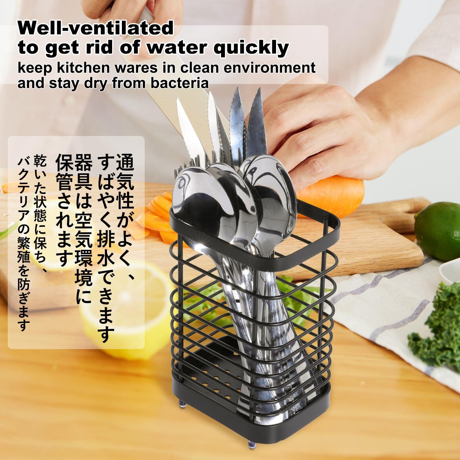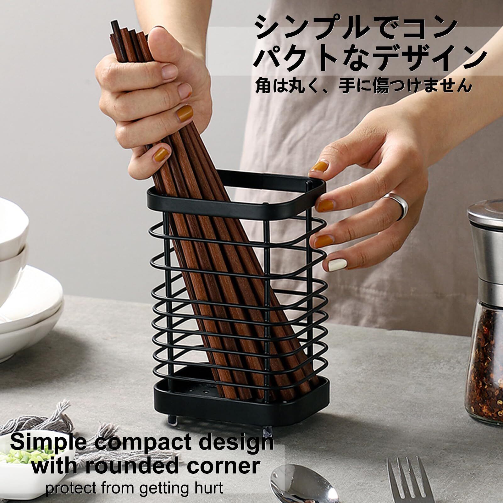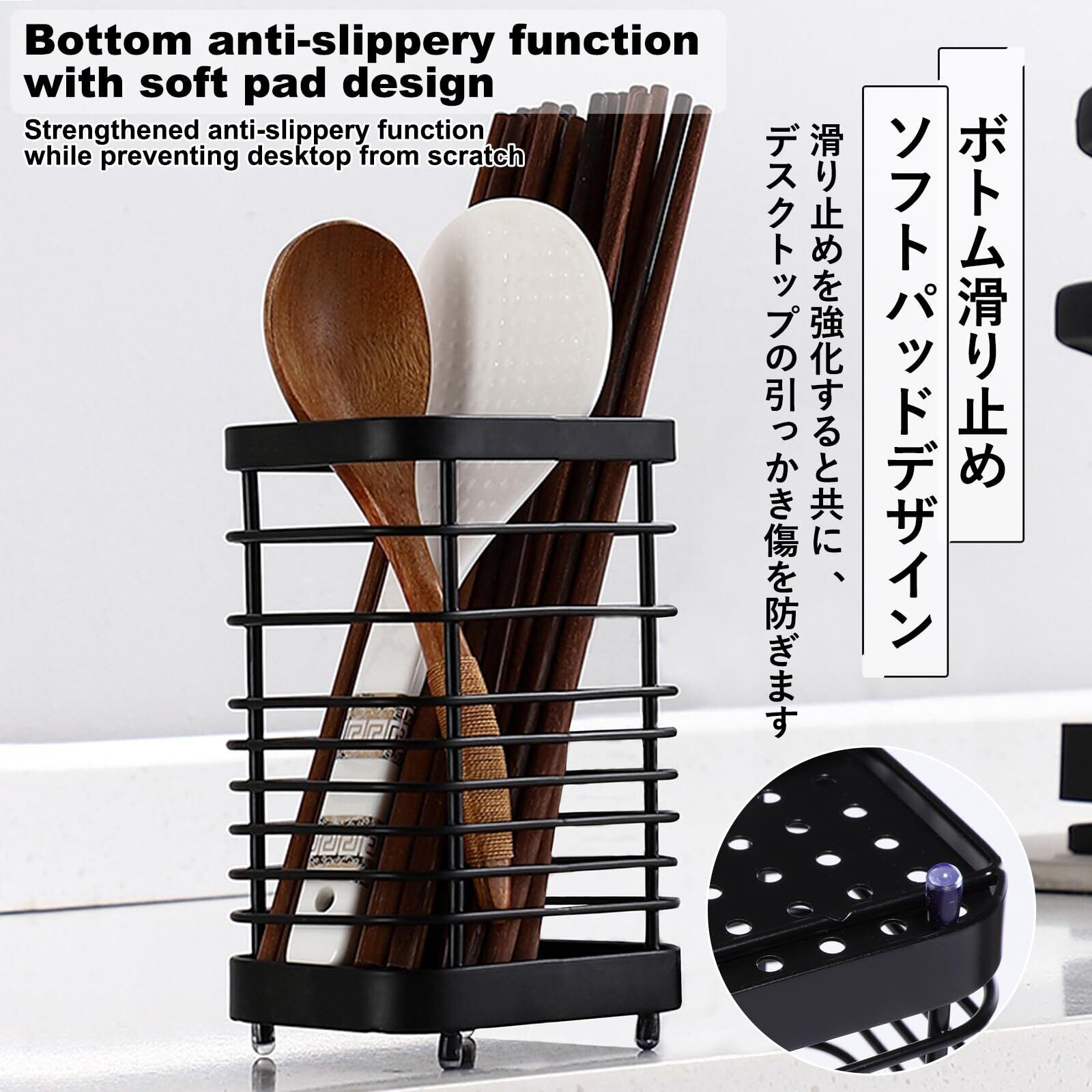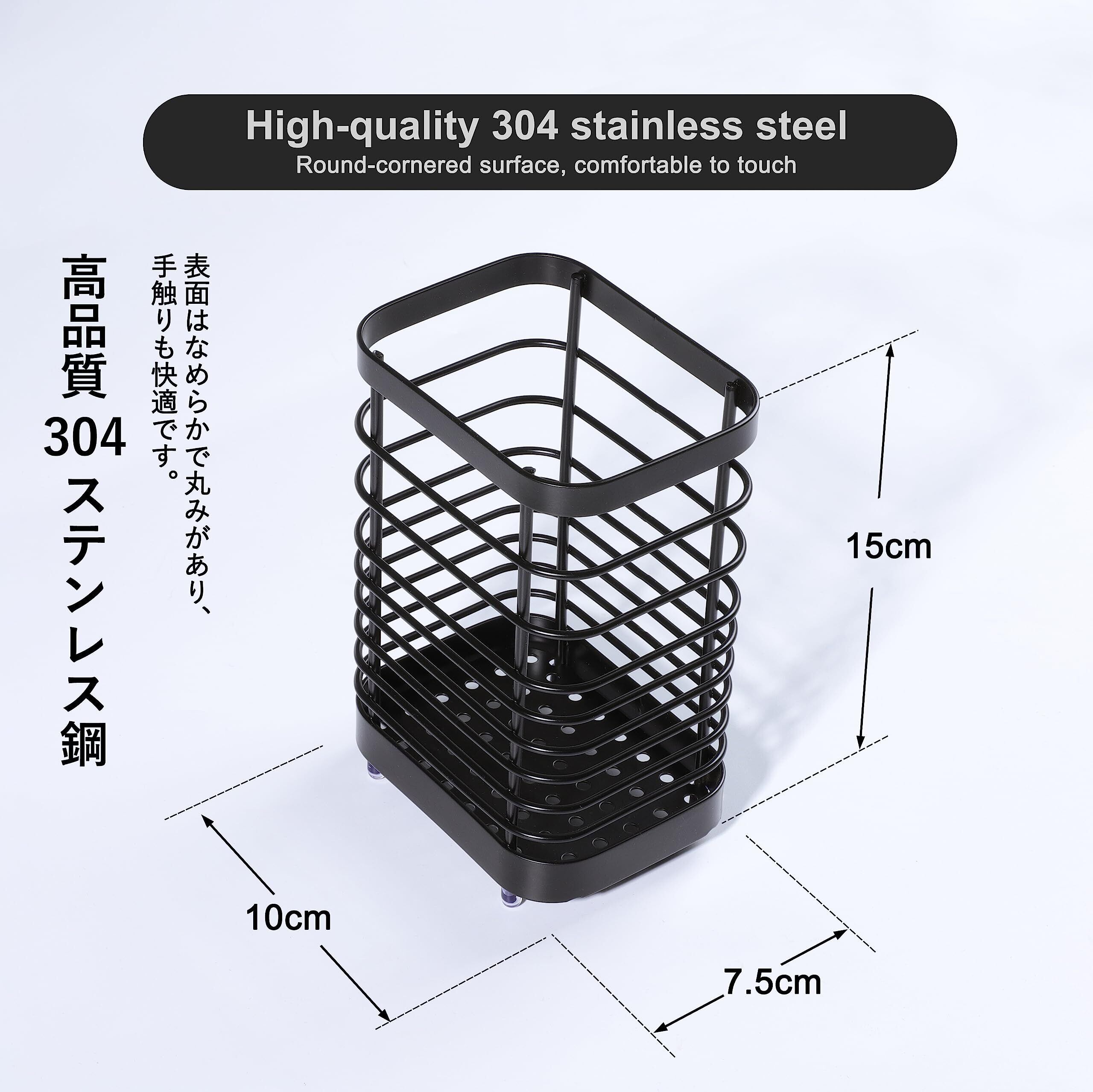 Toski 箸立て カトラリースタンド 18-8ステンレス製 キッチンツールスタンド 箸入れ 食器入れ 水切り スプーン ツールスタンド ブラック