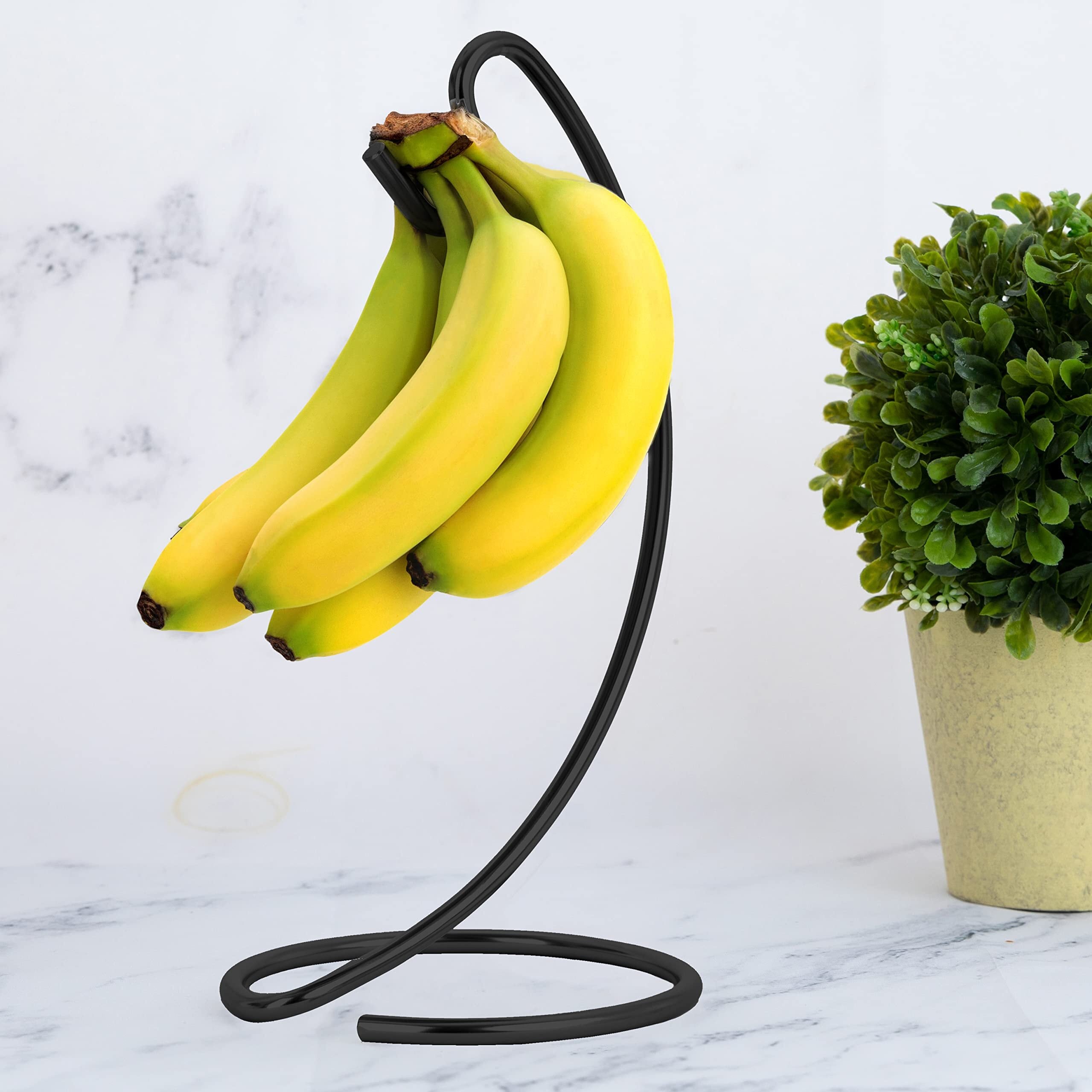 Homeries バナナホルダー モダン ラック ハンガー ツリー スタンド フック キッチン カウンタートップ用 サテンニッケル バナナ ホルダー キーパースタンド (ブラック)