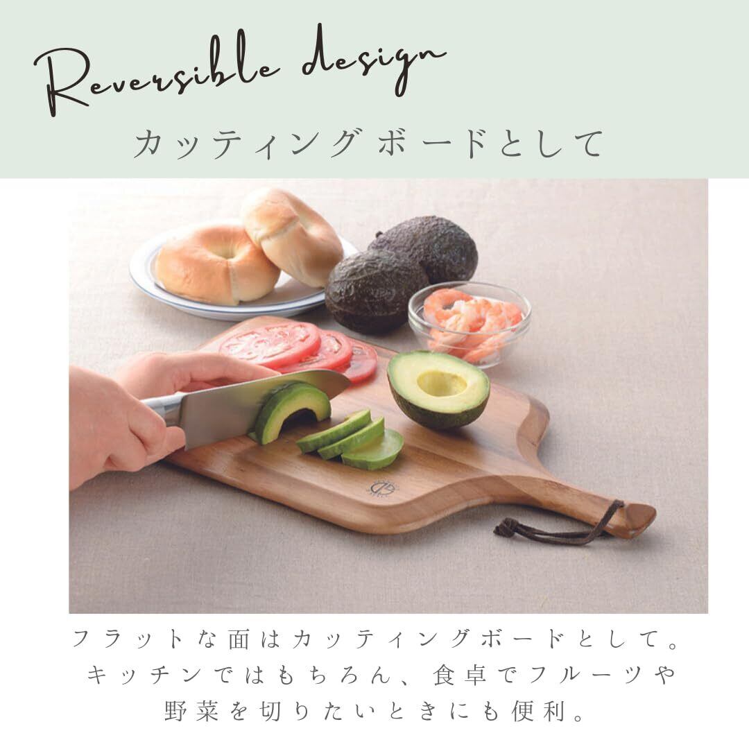 表面はトレイとして使用でき、裏面はまな板としても使用できる、リバーシブルトレイ&カッティングボード。家族一人一人の専用トレイとしても使用可能。吊り下げることも出来ます。