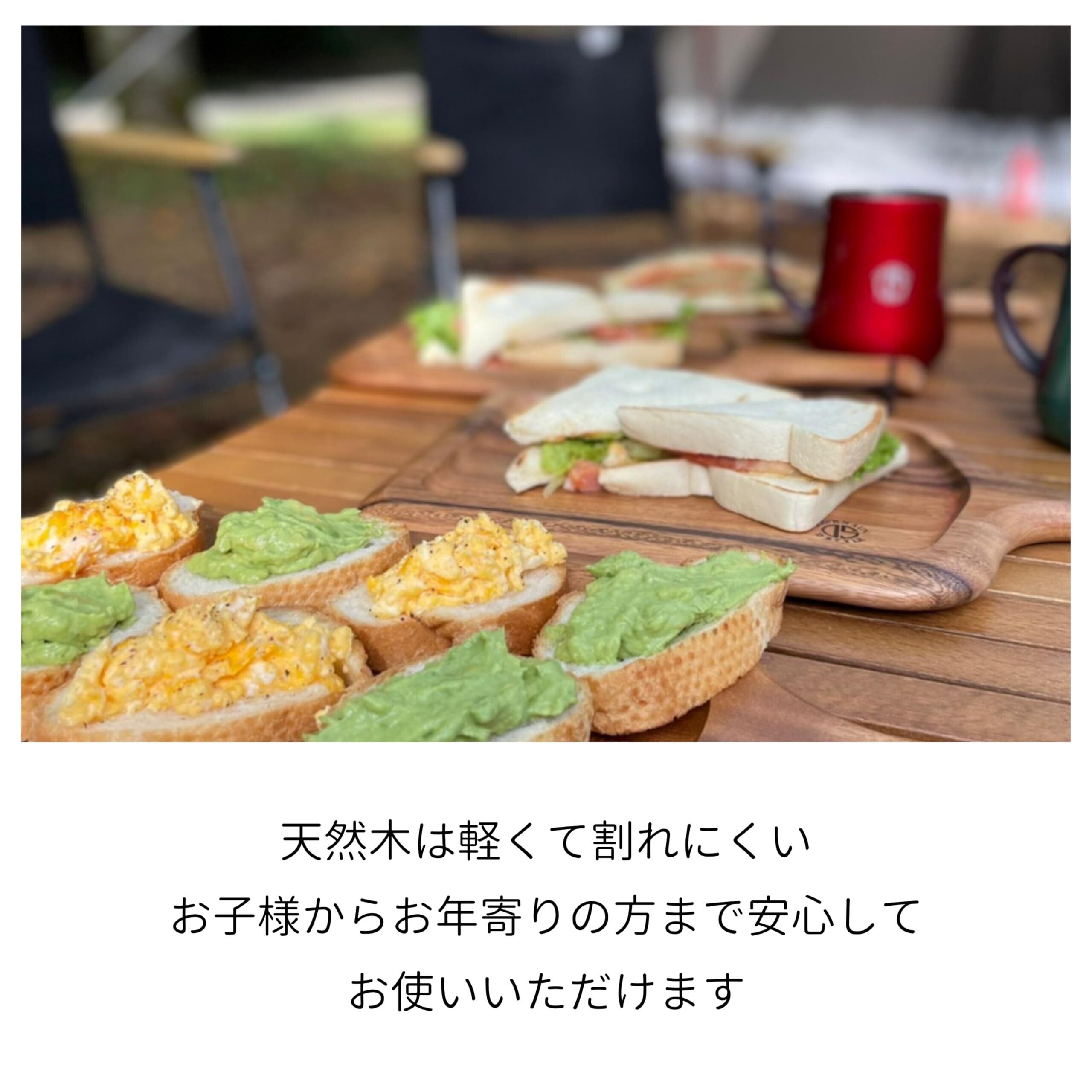 天然アカシア材のぬくもり。色や木目が違うのも天然木ならではの特徴。使い込むごとにあじわいが増していきます。
