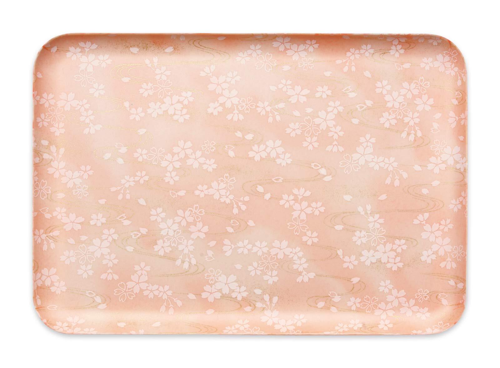 タツクラフト 友禅和紙 トレー L 39cm 桜 流水紋 食洗機対応 トレイ お盆 おしゃれ プラスチック 大 小 大きい 深い 四角 長方形 洋風 和風 和モダン インテリア 白 ランチョンマット 子供用 布 洗える 防水 撥水 子供 給食 国産 和雑貨 橋本達之助工芸 TATSU-CRAFT 日本製