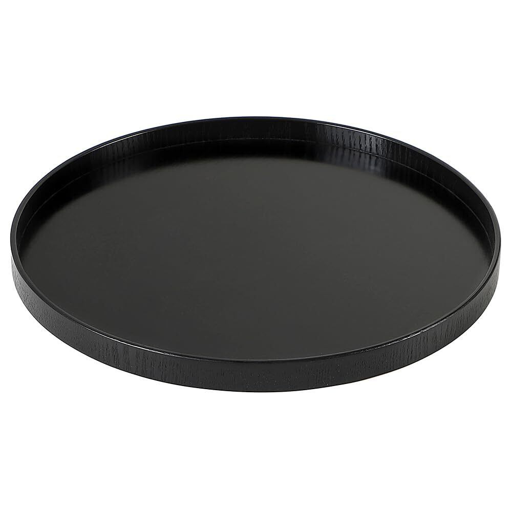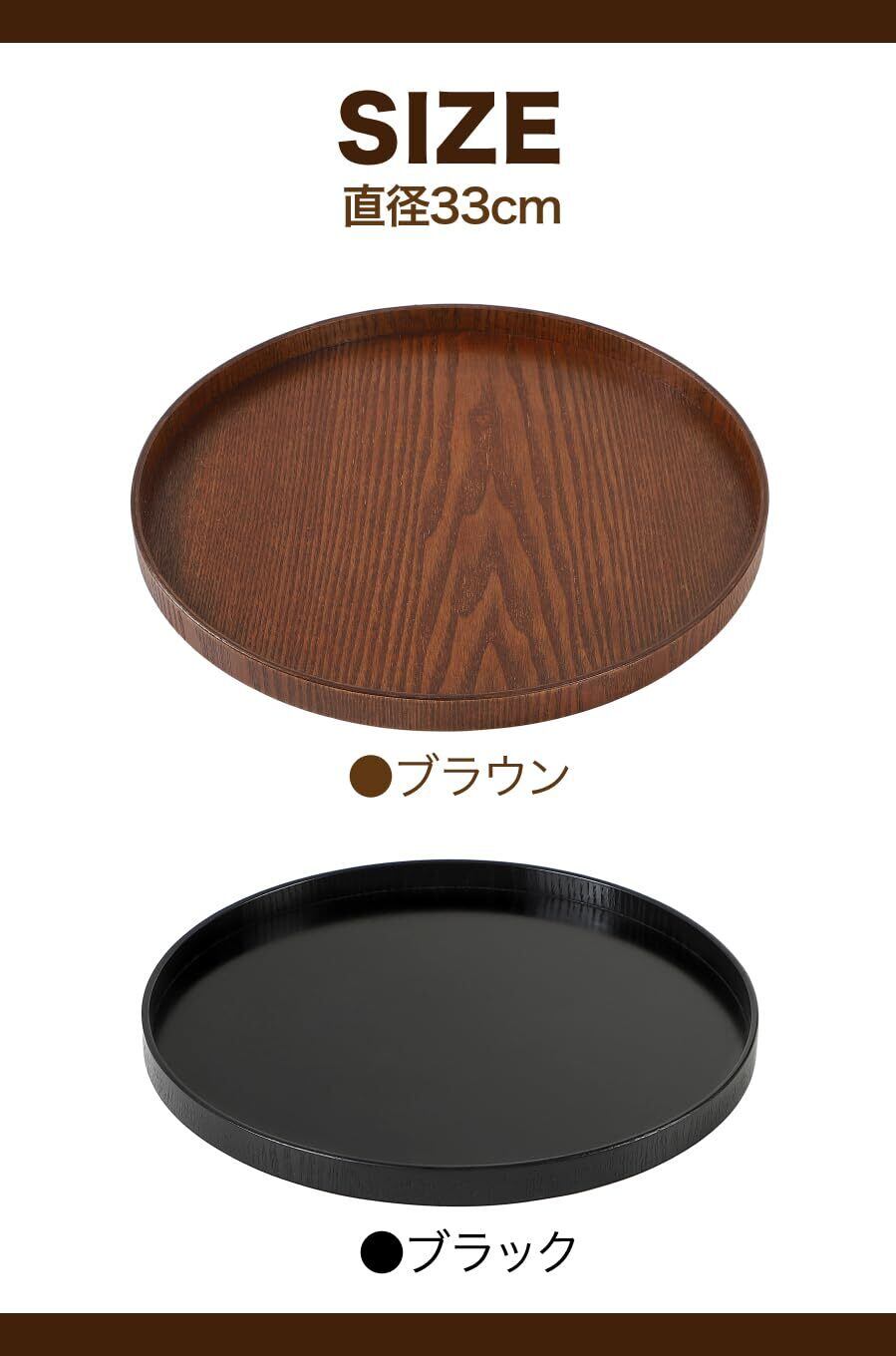 AllBright お盆 木製 円形 すべり止め加工 ナチュラル 33cm お膳 茶道 カフェ ティー (ブラック)